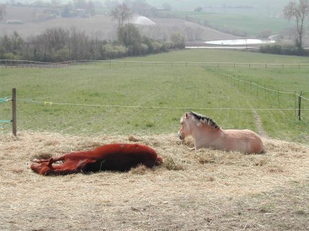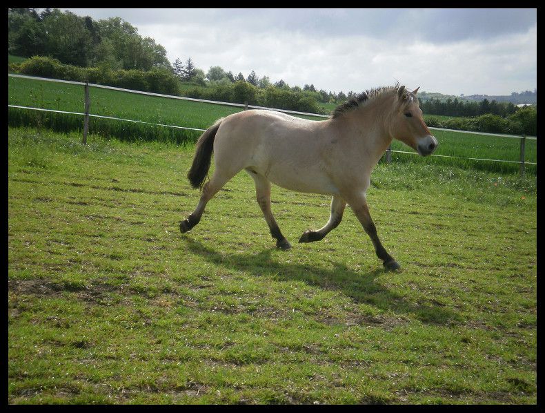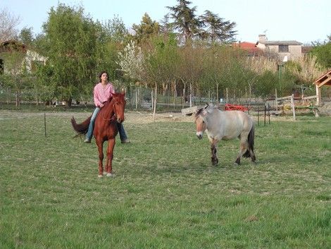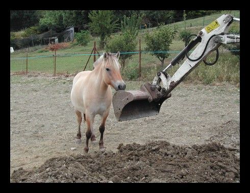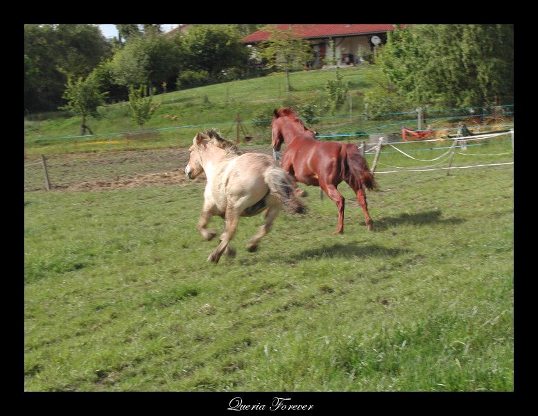 Déconnecté | Sinon, news des 2 gros! Queria a fait une mauvaise réaction à une piqûre d'insecte (enfin comme toujours ) mais là apparemment c'était assez impressionant à voir d'après mon père...elle a fait une sur-croupe avec les poils dressés comme des "i" Heureusement en 2 jours c'est passé! Demain je lui ai demandé s'il pouvait me sortir Quetquet un peu, ben oui 15 jours sans rien faire elle commence a en avoir l'habitude et faut pas qu'elle s'y fasse Du coup mon père en montera un le matin et l'autre l'aprem Et quand y'aura petite Bambi (et qu'elle aura l'âge evidemment) ça sera en longe derrière l'un ou l'autre pour l'habituer à l'extérieur ![]() Benh oui regardez il commence déjà à s'entraîner Bon ok, c'est pas le mm gabarit |