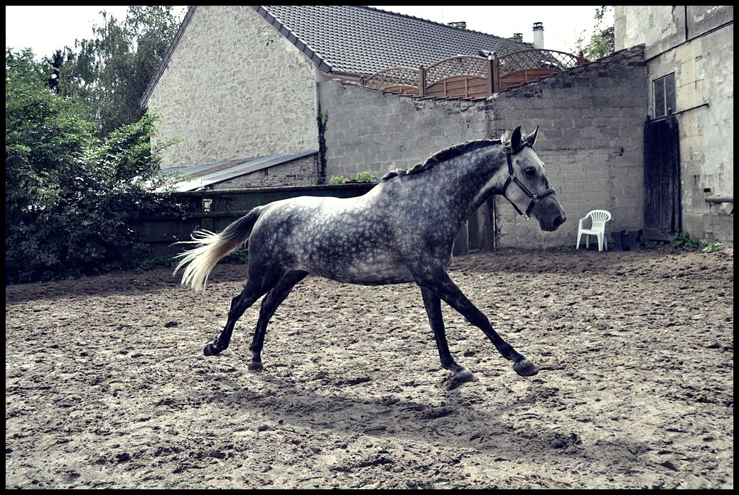 | Dire merci | Merci fejica. Des nouvelles : Safir est donc dans sa nouvelle pension et tout ce passe bien, il engorge un peu car il n'as pas l'habitude d'etre au box du coup il est sorti tout les jours pour aller au paddock. Il est aprécié par tout le monde ( comme d'hab .. ) et je suis tres contente des prestations du club, vraiment de bonnes intal' et des gens adorable. Ce soir longe avec elastiques ou il n'as pas arrété de faire le kéké dans la carriere, avec la queue en l'air, les naseaux bien ouvert et tout, aucune concentration du coup direction le mannege, ou pendant 5 min ca été le folklore ... Puis apres tip top !! Et il a découvert son nouveau jouet de box, le truc avec la boule likit, il kiff grave !! Quelques photos : ![]() ![]() ![]() ![]() ![]() |