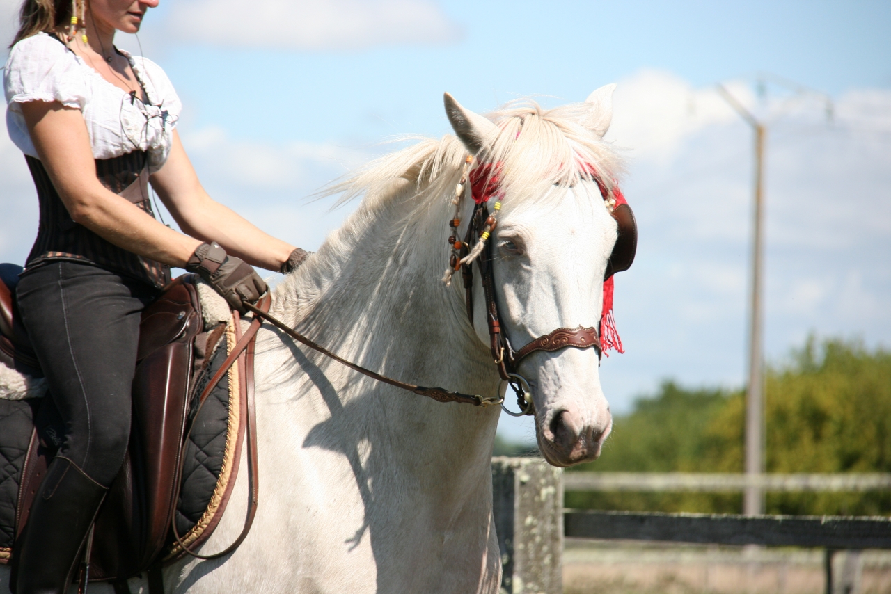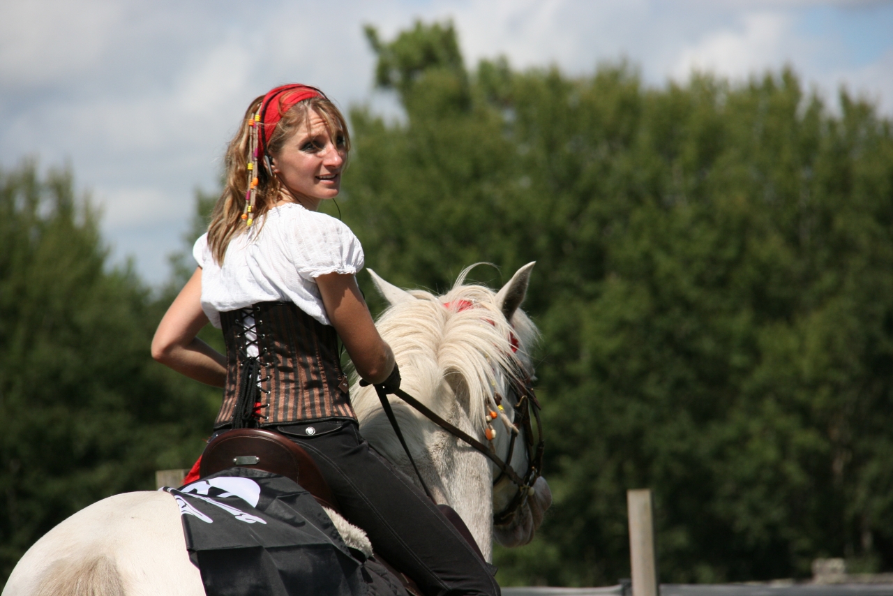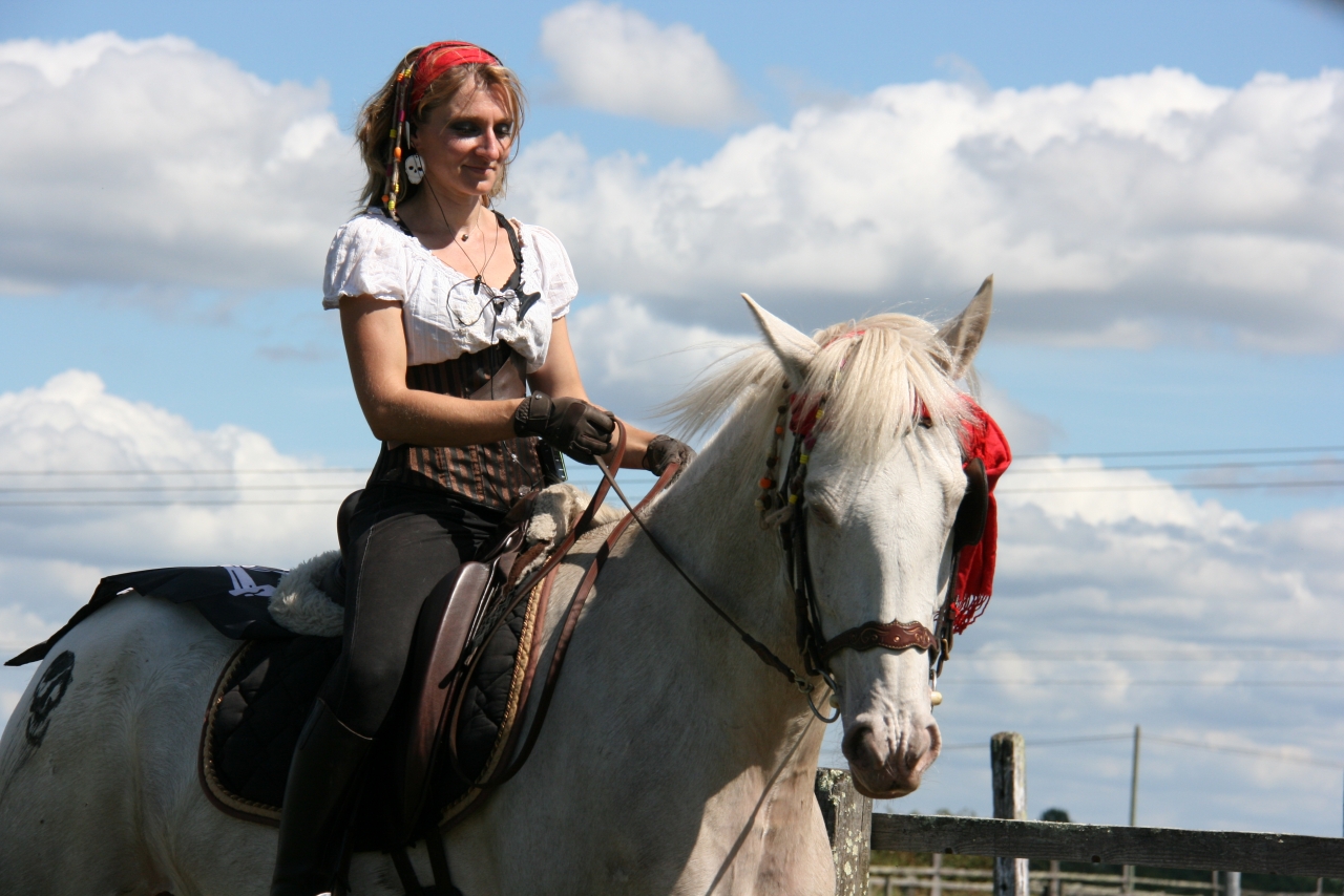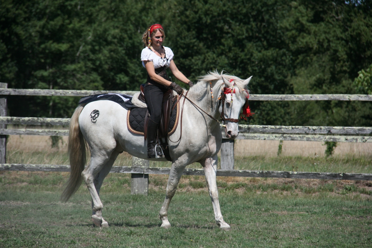 | Dire merci | Ice Queen, oui Claude m'a parlé de cette jument aveugle car elle est de même robe que Tin visiblement et a semble t il des traits de caractère commun Stephy oui le serre taille aide bien et est plus confortable à cheval que je ne le pensais ;-) Merci pour vos gentils compliments Nous avons travaillé dur pour la recherche du costume pour mon Prince Pirate ! en même temps, c'était facile, et il vaut mieux tourner la chose positivement pour son oeil ! on/ j'ai beaucoup progressé la dessus !! Merci Anngel ;-) je me souviens quand je suis rentrée de Toulouse après l'opération de Tin, avoir pleuré toutes les larmes possibles et dit à mon homme que ça ne serait plus le même cheval, que les "gens" ne diraient plus de lui qu'il est beau... réaction puérile, certes, mais même si pour moi il est et restera le plus beau je suis surprise de voir à chaque fois que l'on se déplace, les réactions des gens et le nombre de compliments à son sujet... son charisme et son tempérament ne laissent pas indifférent c'est sûr ! et il est TIn, encore plus aujourd'hui ! ma goutte de soleil |