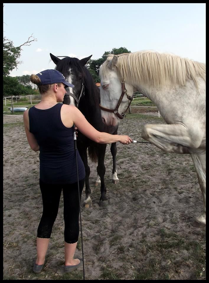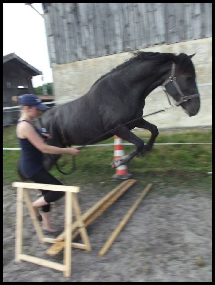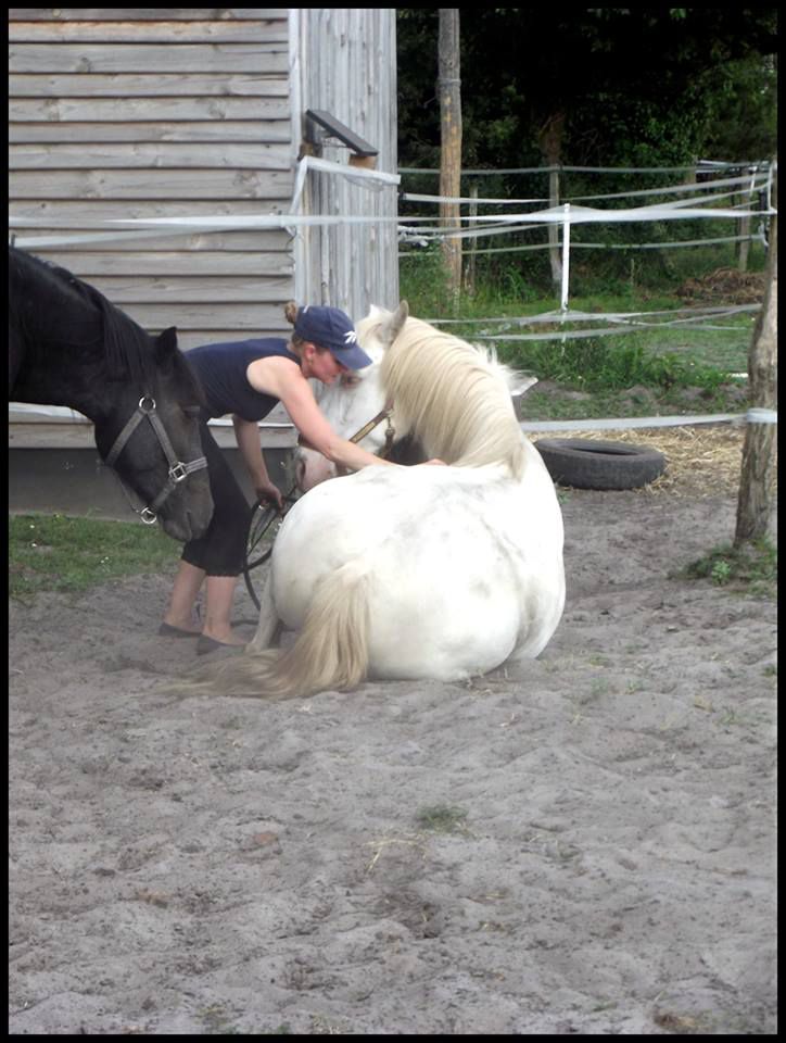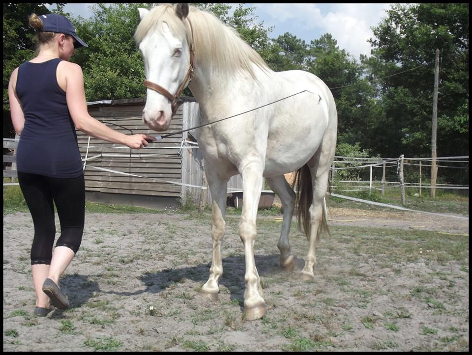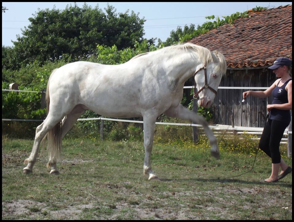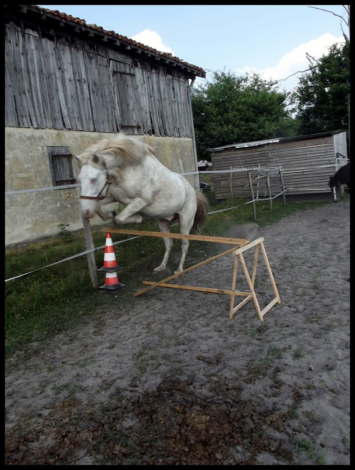 | Dire merci | Grace à LaFemmeChaussette et Isa sa copine qui sont venues me rendre visite, je peux enfin vous partager quelques photos des doudous au travail... siiii siiiii c'est vrai On commence par quelques assouplissements... cession.. (pas très démonstratif, il sait le faire beaucoup mieux ) ![]() Ce que Tinou doudou préfère... pas espagnol.. ![]() On montre à son frère... ![]() On profite d'une envie de se rouler pour travailler le coucher.. toujours sous le regard de Petit bout.. ![]() Et pour finir, on saute un peu en liberté (désolée pour l'obstacle bricolé mais pour le moment on est pas encore équipé ) ![]() Apprentissage en main pour Petit Bout... ![]() ![]() Malgré un manque de concentration et de fermeté de ma part, Tin s'est montré volontaire comme toujours.. Baquiano lui a besoin de travailler un peu plus... le caractère commence à s'affirmer.. Depuis Tin s'est blessé.. une vilaine entaille sur le haut du paturon.. après 10 jours de soin ça commence à aller mieux mais la complète guérison va être longue..![]() Je m'étais dit que du coup j'allais travailler Baquiano... mais.. il pleut Il a quand même eu son premier cavalier sur le dos sans broncher une oreille et surtout à sa demande Bébé Camille était aux anges Future Cavalière vous avez dit ?!! non elle déteste ça ![]() Bref, merci à Mathy et Isa pour les photos !! |