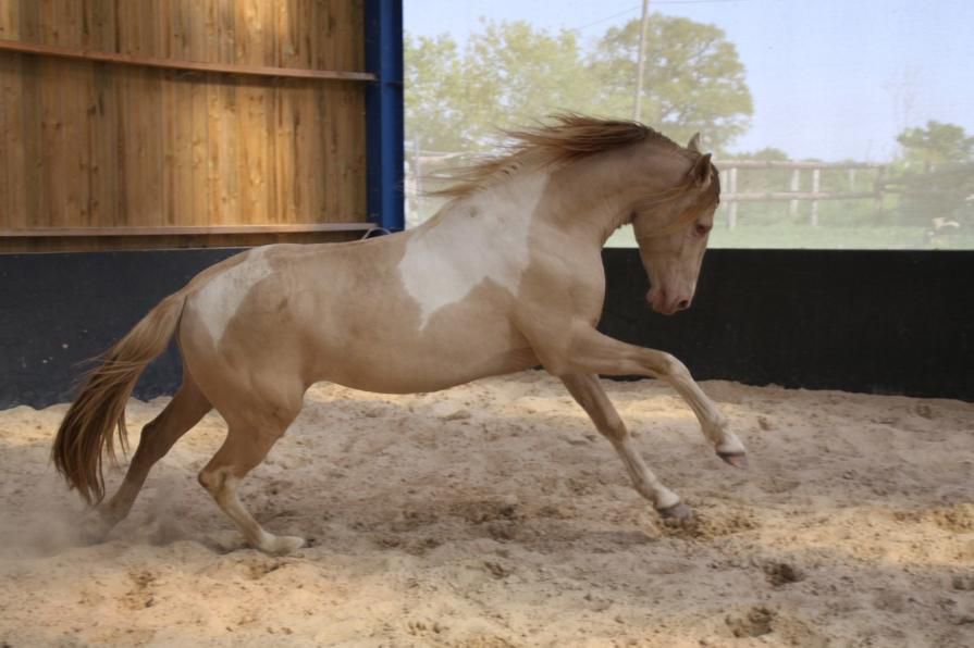 | Dire merci | Le papa est Te Quiero de Répand, actuel étalon de l'élevage des Mirys. C'est un ibérique (espagnol par son père et portugais par sa mère) avec une robe dingue: il est light classic pearl pintado... J vous mets une photo (du site de l'élevage des Mirys): ![]() |