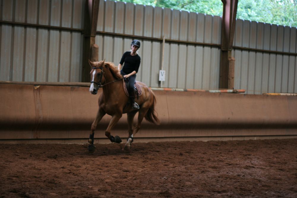 Déconnecté | Oui, pour l'ambiance c'est assez simple, puisque je suis seule... Ha ha. Et j'aime cette tranquillité Le plus qui fait tout : hier suis arrivée après 19 h. Je trouve sûre lâché au manège. En fait, comme ils n'étaient pas surs que je vienne, ils me l'ont lâché parce qu'un jour au box pour eux ça n'existe pas... Et bilan de ce matin : pas toucher la bouche, les doigts ne doivent rien faire a part résister céder, il est trop sensible. Pas de demi arrêt vêrs le haut mais demi parade a l allemande si nécessaire Pas de jambes au début. Au fond de la selle prendre du retard dans l'assiette pour qu'il ne court pas derrière des épaules, mais qu'il prenne du temps pour décomposer dans un premier temps en relevant le capot. Ensuite seulement quand l'assiette régule la cadence on peur ajouter les jambes pour avancer plus. Je l'ai vu joliment trotter, joliment galoper, le tour dans un calme très agréable et... De la patience il a dit, être très patiente faudra que je sois... Sympa le changement. Vraiment. |