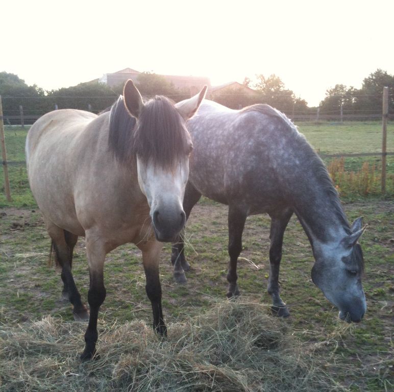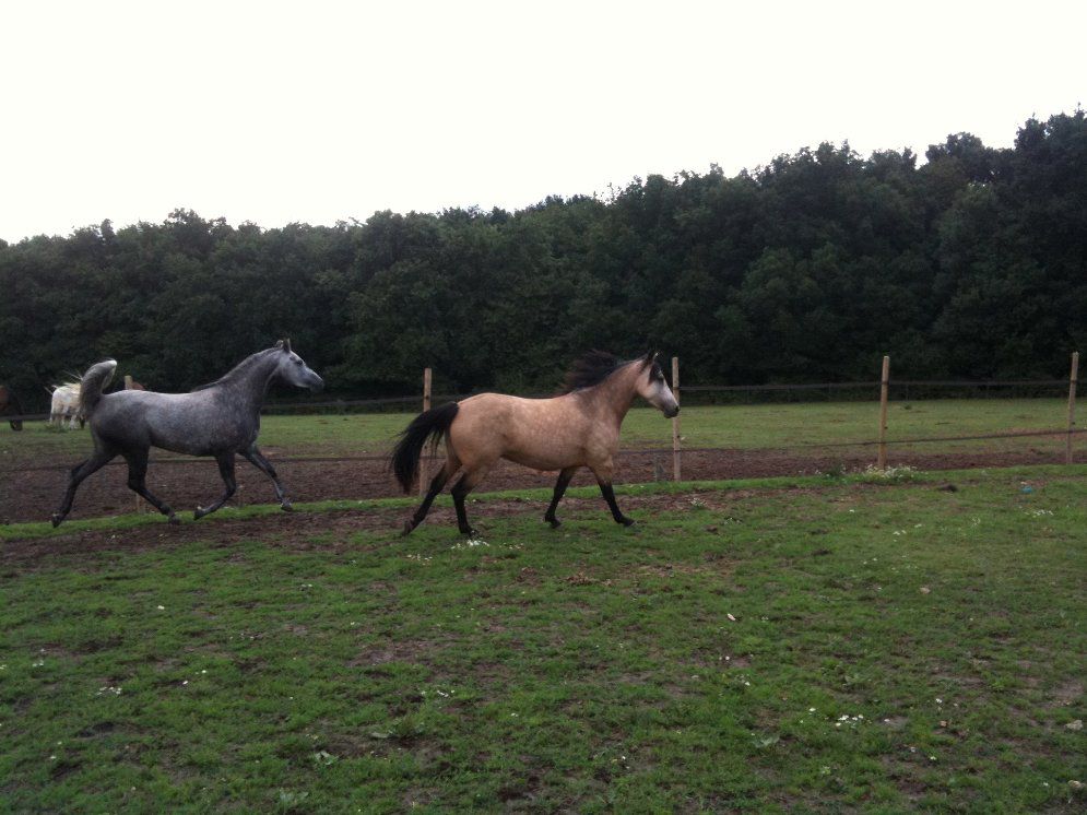 | Dire merci | voila ouverture d'un post pour mes deux filles... j'ai perdu mon irish en juin et j'ai beaucoup de mal a m'en remettre ...le hasard a fait que je suis tombé sur l'annonce d'une ponette PFS sur qui j'ai eu un bon coup de coeur. un appel au vendeur qui s'est en fait reveler etre eleveur de pur sang arabe. on discute un peu , je fais du trec et la ponette risque d'etre trop verte par contre il a une pur sang arabe du meme age ( 5 ans) qui conviendrais bcp mieu...et la arrive la question du prix...totalement hors budget pour moi. ![]() donc mon choix reste porter sur la ponette... visite > coup de coeur confirmé sur la PFS. et gros gros coup de coeur sur la psar qu'il m'a qd meme sortie et fait essayer... rediscussion avec l'eleveur , le trec l'interresse , la jument n'a pas le potentiel pour les internationaux endurance mais c'est lui qui l'as fait naitre donc il voudrais qu'elle soit un peu valoriser qd meme...il me fait une proposition et me voila reparti avec ....les 2!!!! voila pour la petite histoire désolé du pavé voici donc sahira el widde ( la grise) et shadow du bosque ( l'isabelle) ![]() |