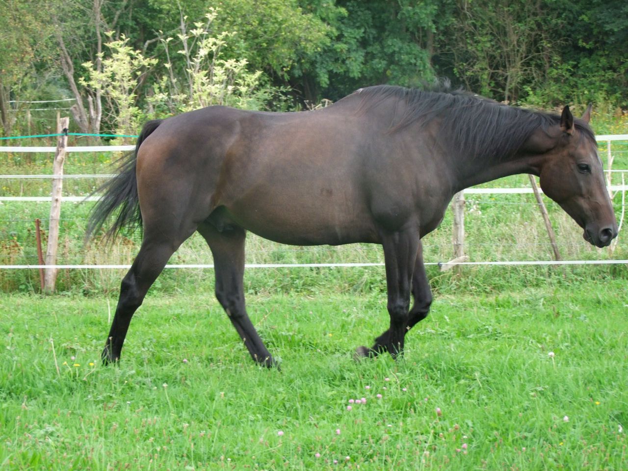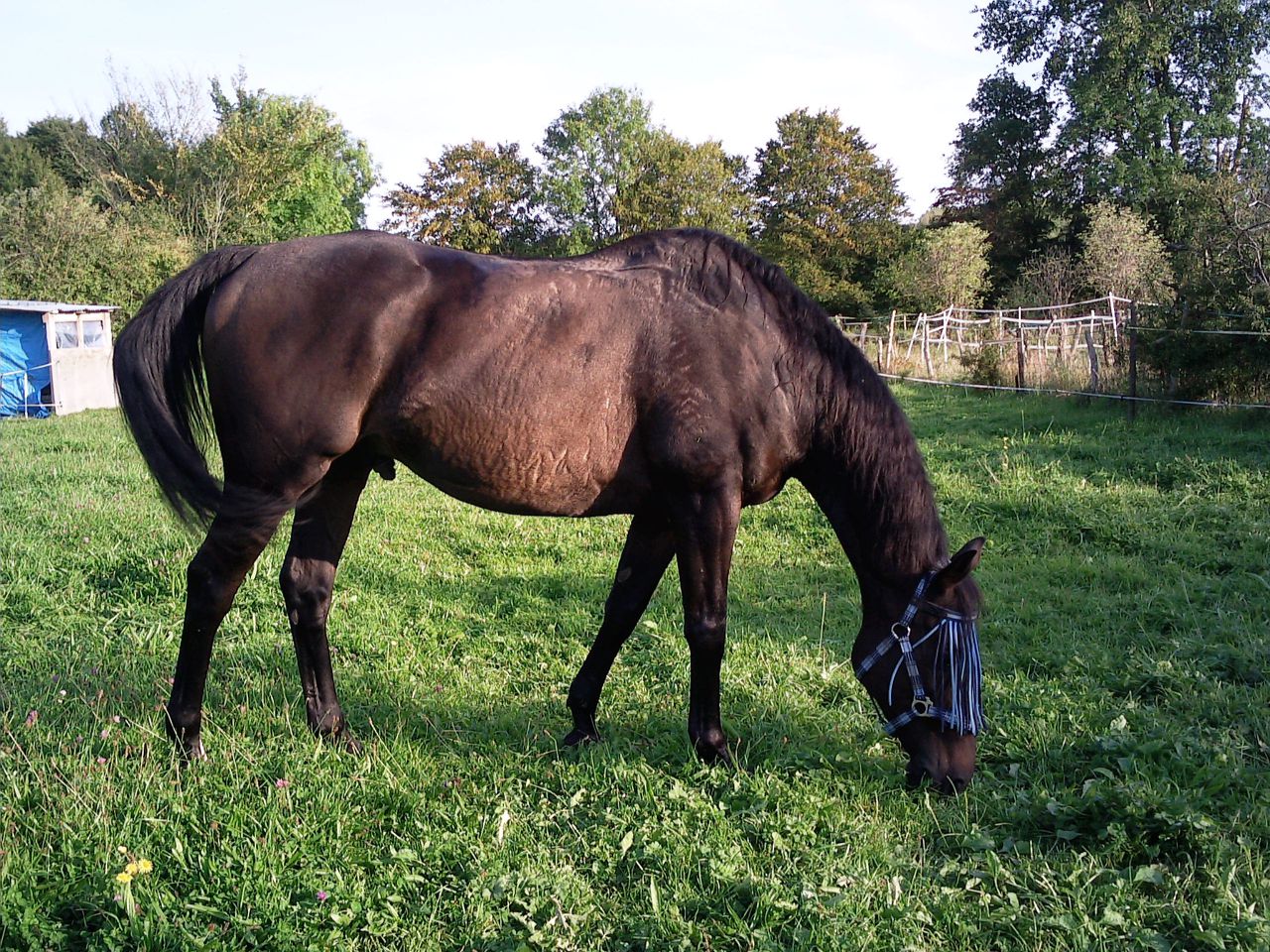 | Dire merci | hihih ça jsais pas il est arrivé il a cherché ses potes, pas de pot ils sont pas là, pdt ... allé...5secondes ![]() ensuite il a brouté, galopé, puis brouté, et là je croyais qu'il allait regaloper ...mais non il a brouté... ^^ petit chou, en tt cas il est content de voir tte cette herbe moi je le restreint, je le sors tard et je le rentre tôt, sinon il va gonfler comme une barrique et me foutre mes six semaines de taf en l'air en tt cas ce soir, j'ai, malgré ma migraine, voulu ne pas le sortir du bon rythme adopté ! à peine rentrée du taf jss allée poser mes fesses dessus, direction notre carrière (ho que l'herbe est haute ici aussi ), et un peeves génial ! super, bon très sur l'oeil, sur ses gardes, on sait jms d'ici qu'un monstre ai eu le tps de venir se cacher pdt son absence mais bon à l'écoute, et en avant, on a bien bossé. et du coup je l'ai emmené souffler en balade à l'extérieur pour finir. bref très contente de lui ça fait plaisir. |