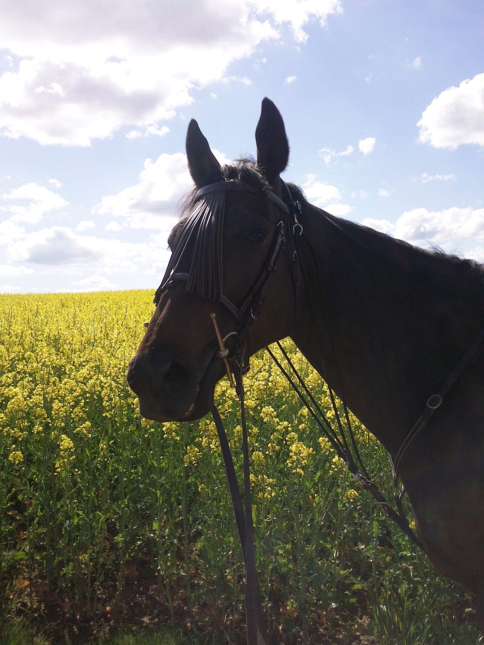 | Dire merci | Ensuite on recroise les vaches, sauf que celles ci elles étaient fichtrement curieuses ! Bon je laisse peeves brouter un peu en face d'elles le tps d'un coups de bigophone, et hop on repart, je le fais se rapprocher et là BOUM changement de cheval bah il a fait son entier quoi, genre il avait envie de sauter les vaches j'avais limite honte, heureusement qu'il avait la classe, queue en panache version PSA, encolure toute arrondie et gonflée version testostérone me vla ! et évidemment piaffé de peeves...piaffé de stress/branlattidue j'en sais trop rien, mais bon jme ss trimbalé avec mon faux entier PSA sur au moins 15 mètres comme ça .... piou les modèles et allures version picarde BNon j'ai remis mon popotin dessus, le gogue pr aller bosser un peu, et j'ai travailler les trots allongés et rassemblés sur quelques chemins du village que l'on connait bien. Je lui ai proposé un galop à un moment,mais il n'a vraiment pas voulu, de peur, tjrs à mater à droite à gauche, du coup j'ai insisté pr un départ et repassé à l'allure inférieur de suite, puis pas, arrête carotte et rentrer au bercail ^^ Ah bah d'ailleurs de retour à la maison j'ai voulu restester 2 autres chemins aussi ![]() j'ai hésité genre "je lui en demande trop ou pas", puis je me ss dis "ho ça va merde il a 9 ans ! pas 4 ! j'en suis plus au débourrage "Et puis il n'était pas rassuré du tout, mais il a fait tout le chemin au pas sans chauffer, juste quelques freeze ou sursaut. mais rien de terrible. en soit je suis contente ![]() |