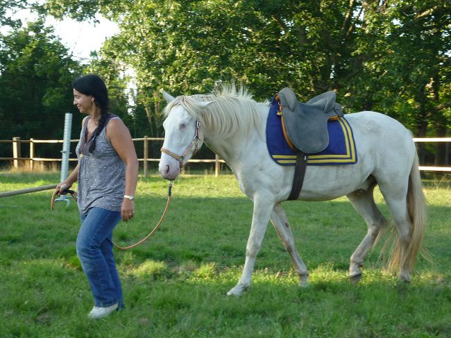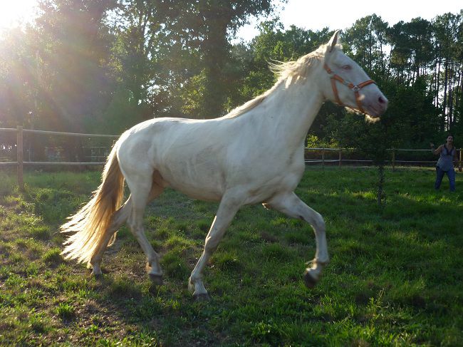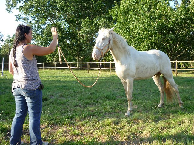 | Dire merci | Comme je l'avais dit il y a longtemps, "en aout, je débourre Tin!" J'ai de la chance, une jeune fille cliente de la CH me donne un coup de main ![]() 1er aout, on attaque, je le mets en carrière, on travaille un peu en liberté, au bout de 10 minutes il en avait marre, c'est bon, de toutes façons j'ai tout le mois d'aout. (pas de photos, j'étais seule). 2 aout, pas très bonne séance, il n'était pas super à l'écoute, c'est pas grave, j'abrège, de toutes façons, j'ai tout le mois d'aout 3 aout, il est super à l'écoute, la maman de la jeune fille est présente avec l'apn. je travaille un peu en main. L'immobilité, il comprend très vite ![]() ![]() Il capte aussi très bien les ordres en liberté, c'est super! ![]() Bon, ben je vais voir si il se souvient qu'il y a plus d'un an, je lui avais mis une selle sur le dos... Ah ben oui, il doit se souvenir, il ne bouge pas d'un poil, cool! ![]() Je le fais un peu marcher avec la selle, pas de soucis, ça ne le gêne pas. ![]() Suite... |