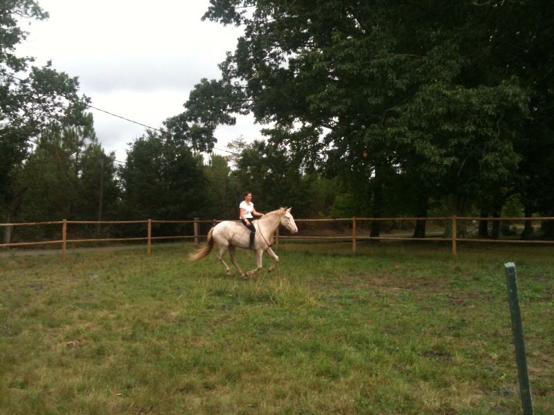 | Dire merci | Merci Emeline ![]() Aujourd'hui on a changé un peu le travail, beaucoup de mise en équilibre et il se tenait tellement bien tout seul qu'Aurélie a eu envie de voir ce qu'il donnait sans selle et sans rênes. Il se tient vraiment bien décidément ![]() Pour la direction il y a encore un peu de travail (cela dit, c'était la première fois ), même si sur cette photo c'est plutôt pas mal ![]() ![]() Ce qui est sympa, c'est qu'on avait déjà remarqué qu'il avait un petit galop bien cadencé et très régulier rênes longues, en carrière ou en extérieur, et sans les artifices le galop est toujours identique ![]() ![]() Il a une attitude et un équilibre naturels qui sont excellents, ce qui fait qu'il y n'y a pratiquement pas de travail pour l'avoir correct ![]() ![]() C'était une première fois pour les deux, Aurélie n'ayant jamais monté en liberté auparavant, mais il me semble que ça lui a beaucoup plu, je pense qu'elle va réitérer l'expérience ![]() |