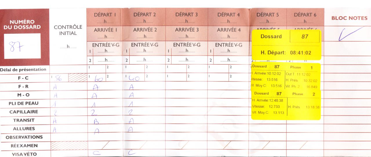 | Dire merci | En juin je change mes méthodes d'entrainement endurance. Avant je faisais un peu d'allures à chaque balade (même si c'était juste une longueur de trot). Je fais maintenant que du pas avec parfois avant les courses des séances d'allures. Le poney passe de 52 de cardiaque au repos à 38. Le 19 juin on refait une course en amateur 3 (40km entre 12 et 15km/h). Le poney est stressé comme à sa première course. On est à 56 bpm au départ, 60 à l'intermédiaire et 40 à l'arrivée. Le poney est super, il est motivé, en forme et boit bien. ![]() ![]() ![]() |