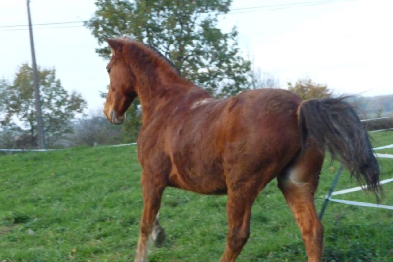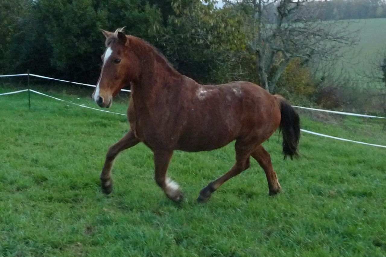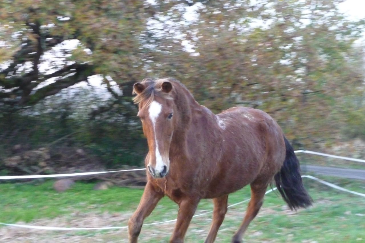 | Dire merci | A la fin de l'été 2009, la propriétaire du poney m'apprend qu'elle déménage. Alors j'ai pleuré et pleuré encore. Car je savait qu'elle n'était pas capable de s'en occuper. En février 2010, au moment de déménager, elle me le donne. Je peux continuer à le laisser dans son box (qui a partir de ce moment la fut propre) et un monsieur nous a preté des prés. A paques 2010 je le met chez une amie pour les vacances et ça se passe très mal, il la charge, galope toute la journée de long en large il est inaprochable. A mon retour de vacances je vais le récuperer à cheval et fait avec lui pour rentrer une 15 aine de km avec de l'allure. Un élevage où j'entraine des chevaux d'endurance me dit de l'entrainer car ça le musclera. Alors je l'entraine et il commence à prendre du volume. En mai 2010, on me prete une ponette shetland pour lui tenir compagnie, il est comme fou de revoir un poney après tant d'années seul. Fin septembre 2010 je participe à une rando de 30km avec lui. Pendant toute la balade j'ai été le cheval de tête, le poney était super dynamique et a gagné la course dans un champ avant l'arrivée. Tout le monde était étonné du peps de ce petit poney. En octobre 2010 je participe à mon premier concours avec lui, une club 4. Il finit un tour très propre à 4 points à cause d'une flaque devant l'obstacle. ![]() |