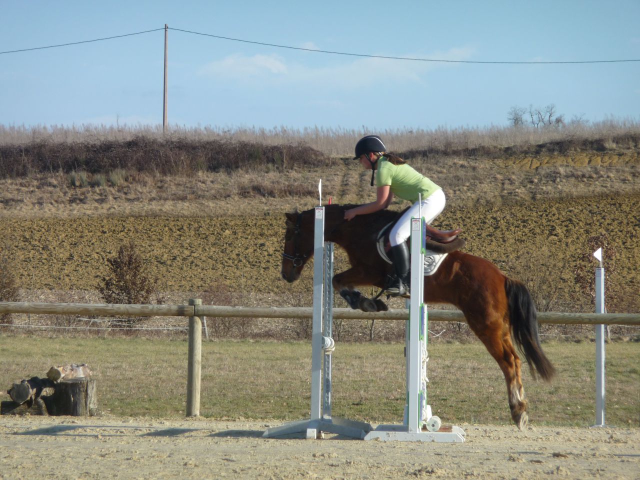 | Dire merci | merci à tous donc des nouvelles, cet après midi stage cso avec Jivago qui n'vait pas sauté depuis le 9 octobre mais bon il a l'habitude de pas trop sauter ![]() donc on détend bien aux 3 allures et on dressouille un peu pour équilibrer avec les RA à la détente puis on détent en sautant quelques barres avec barre de réglage et barre en V, le poney saute pas mal en levant son dos, mais toujours le meme problème soit il tire vers le bas en se couchant soit je n'ai pas de tension .... puis on enchaine un parcours avec un triple et beaucoup de sous bassements, un mur, un triple et quelques virages un peu dur mais ça va le poney lève bien le dos sur le premier parcours mais a plus de rectitude sur le 2eme bilan, un poney pas trop mal qui est pret pour le concours de dimanche ! |