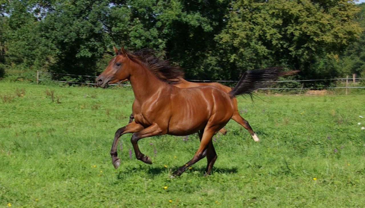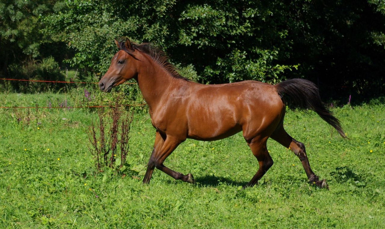 | Dire merci | sarah, certe il est pas fini du tout, mais en peu de temps il a littéralement changé, il a pris de la carrure, a fait une poussée de croissance, changer en tout. ya un mois de ça avant sa poussée il faisait 1.43m donc la peut etre 1.45 je sais pas trop faut que je le toise. pour le coté fin oui il l'est mais il est pas claquette comme certain arabe, il a une largeur de dos impressionnante (un vrai fauteuil pour plus tard ) un très bon dos, des membres certes fin mais pas extrêmement fin non plus, il a de l'os mais tout en finesse clair qu'a coté de certain arabe du forum il est très fin mais il l'est pas tant que ça |