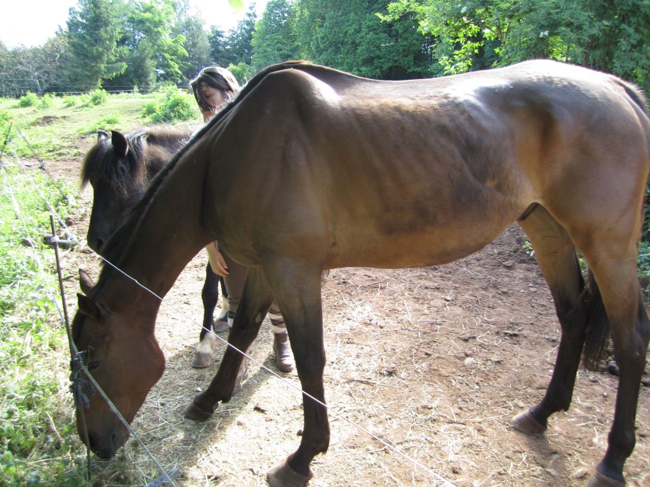 Déconnecté | bonjour à tous, je vais vous raconter l'histoire de ma crapule : RAINBOW et notre belle rencontre qui a débuté par son malheur. Acheté avec un autre cheval par des personnes sans connaissances dans le cheval, je me suis proposée de m'occuper d'eux. Pas parés depuis des lustres, peur de l'homme, le poil terne et infestés de vers, voila comment je l'ai connu. 1 vétérinaire, 1 maréchal et des sacs de granulés et beaucoup d'amour plus tard je décide en accord avec son propriétaire de le mettre en pension chez une amie. son compagnon étant repartit avec la femme suite au divorce du couple. voila sa bouille de cheval anémié le jour de son arrivée chez mon amie. je n'ai jamais été aussi soulagée de le savoir en pension chez elle |