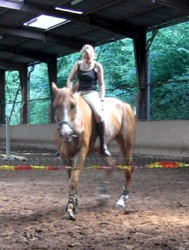 | Dire merci | Je travaillais sur pas compté en essayant de rassembler sans les mains et les allongements. À un mOment je pose une jambe, et il est parti au trot. Mais un départ venant réellement de derrière dans un parfait équilibre e dans l'impulsiOn !!! Aaaah c'est trop top comme sensation j'adore ! Faut pas croire, la pas compté ça donne de très bonnes choses ! |