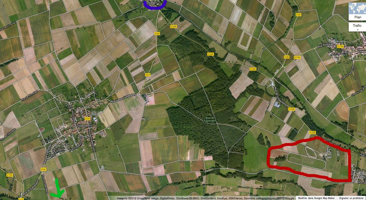 | Dire merci | je continue mes histoires de pensions ..... Donc actuellement, on en est là : en ROUGE entourée : ma pension actuelle et la flèche, c'est là où il y aurait la nouvelle pension ..... en VERT : chez moi en BLEU maison achetée... ![]() nouvelle pension, de plus près (on distingue les pistes de galop, avec les même codes couleurs.... ![]() |