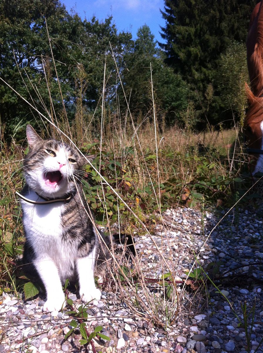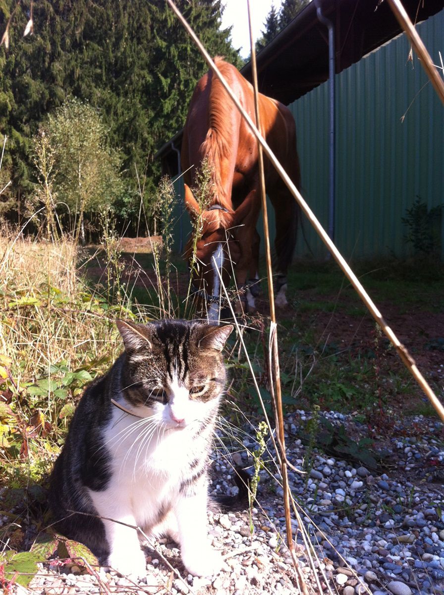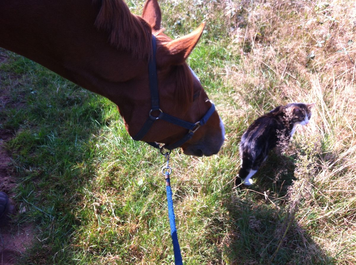| Dire merci | bon chez nous, ça va ça va .... 38° ce matin à 10H30, (couvert avec chemise la nuit) donc, hopn à poil, et au manège, il ne s'est pas roulé il avait l'air plein de courbatures car il n'osait pas descendre l'encolure donc, j'ai pris l'option de le travailler à pied. D'essayer des trucs puisque je suis super nulle don, hop, licol, stick. Marcher à l'épaule. EH OUAIS la honte, il marche .... mais derrière moi en général donc euh...... hop, marcher, arrêt (j'ai pas le bouton pour l'arrêt) c'est la super merde car il avance OU recule, mais ne s'arrête pas en fait, c'est au cm près de mon propre placer corporel, il est sensible ce naze mine de rien ...... bon allez, au final à main gauche, marcher- troter (cool) marcher et arrêt, c'est GOOD à main droite, je galère à mort, déjà je ne me sens pas bien à sa droite, mais bon, entre énervement et je sais pas quoi, ou je me retrouve à lui courir après ...je fini par faire un tour de marcher -arrêt pas mal ...... les arrêts en fait, c'est ça qui coince ! et puis j'eesaie un peu en enlevant la longe ça marche un peu main gauche, mais à droite faut pas en demander trop ! je termine avec la longe de nouveau voir s'il a bien pigé.... ca a l'air PAS MAL ( à refaire très souvent quoi ) il faut que j'arrête un moment aussi les reculer car quand je m 'approche de lui..... il recuuuuuuule ....alors je veux bien que c'est à nous de les faire bouger, mais là il me fuit juste un peu trop bon, hop, dehors , va brouter...... |