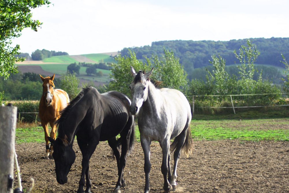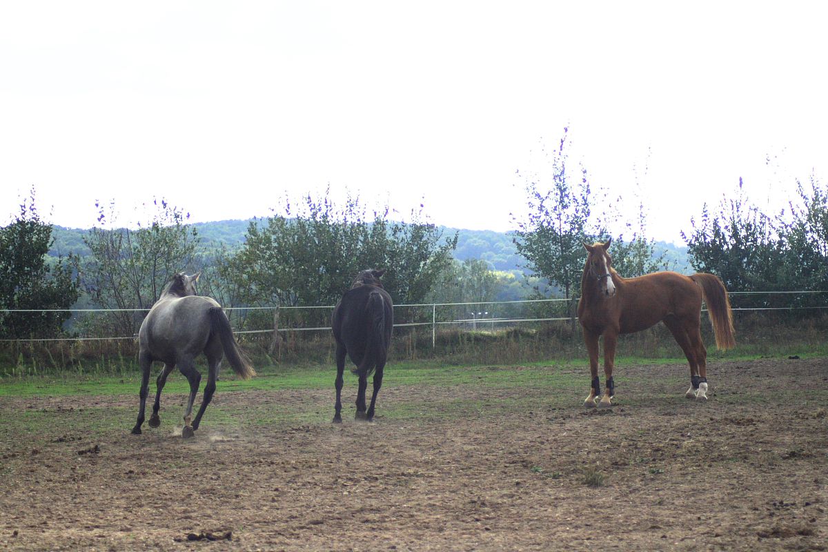 | Dire merci | Bon si je vous met les images vous ne lirez pas le reste ![]() tant pis. C'est parti. Donc Syre et Water commencent les négociations en couinant comme des autistes, pendant un bon moment, mais.... ils ne vont pas faire plus que couiner. Et hop c'est parti ... (au passage, je suis en transe totale de vous mettre des images de lui au pré ![]() Honte à moi je viens de capter que j'ai même pas fermé la boucle du licol comme il faut..... c'est le seul à l'avoir gardé, "au cas où les premiers jours....." ![]() Il va renifler un max de crottins (purée faut que je vermifuge aussi je crois .... ) ![]() La seule chose qui l'intéresse est de trouver un endroit où se rouler ..... ![]() Mais Water le laisse pas, c'est un peu une glue... alors ça couine encore ... ![]() Mais bon ils s'entendent bien... ![]() Et puis finalement ils vont trouver leur coin .... ![]() Et là, angle oblige, vous avez la vue sur nos fameux pneus d'obstacles (ben oui car certain des Purs font du steeple alors ils sautent la dessus des fois s'entrainent comme ils peuvent![]() ensuite...... Comme c'est le calme plat..... le gérant en ramène une 3ème ..... Poney la voit, et vient se réveiller un peu "oh putain une copiiiiiiiine " Et comme ça je l'aime il déchire Jean Jacques : ![]() ![]() |