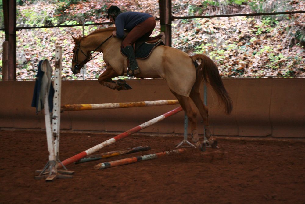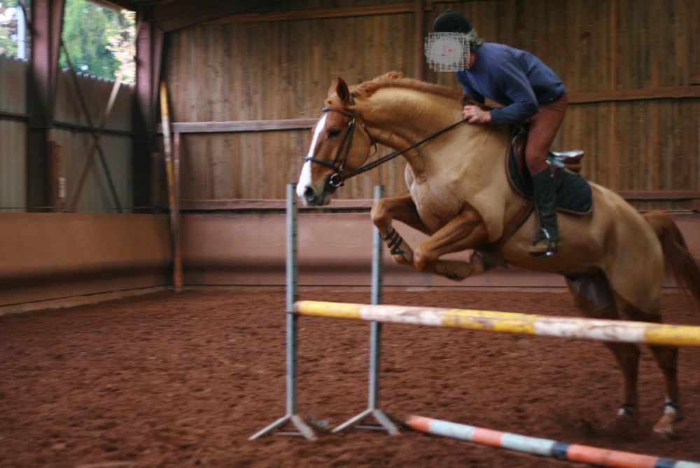 | Dire merci | bah on commencera a la prochaine saison de concours ! Ajd hui LP ! et on a sauté ! petit travail barres au sol A vers C ou inverse et des barres sur des demi voltes. puis on a fini par : demi volte saut en rejoignant la piste au trot, réception, galop main droite, demi cercle, prendre la diagonale saut au début de la diagonale. ça a monté tout doucement jusque 100-110 il me semble (peut etre pas 110....) ça a été. au début il était cakos le gros, mais il a fini par se caler et il était tout zen. pas de soucis particulier en fait, je crois que c'était même pas mal ! |