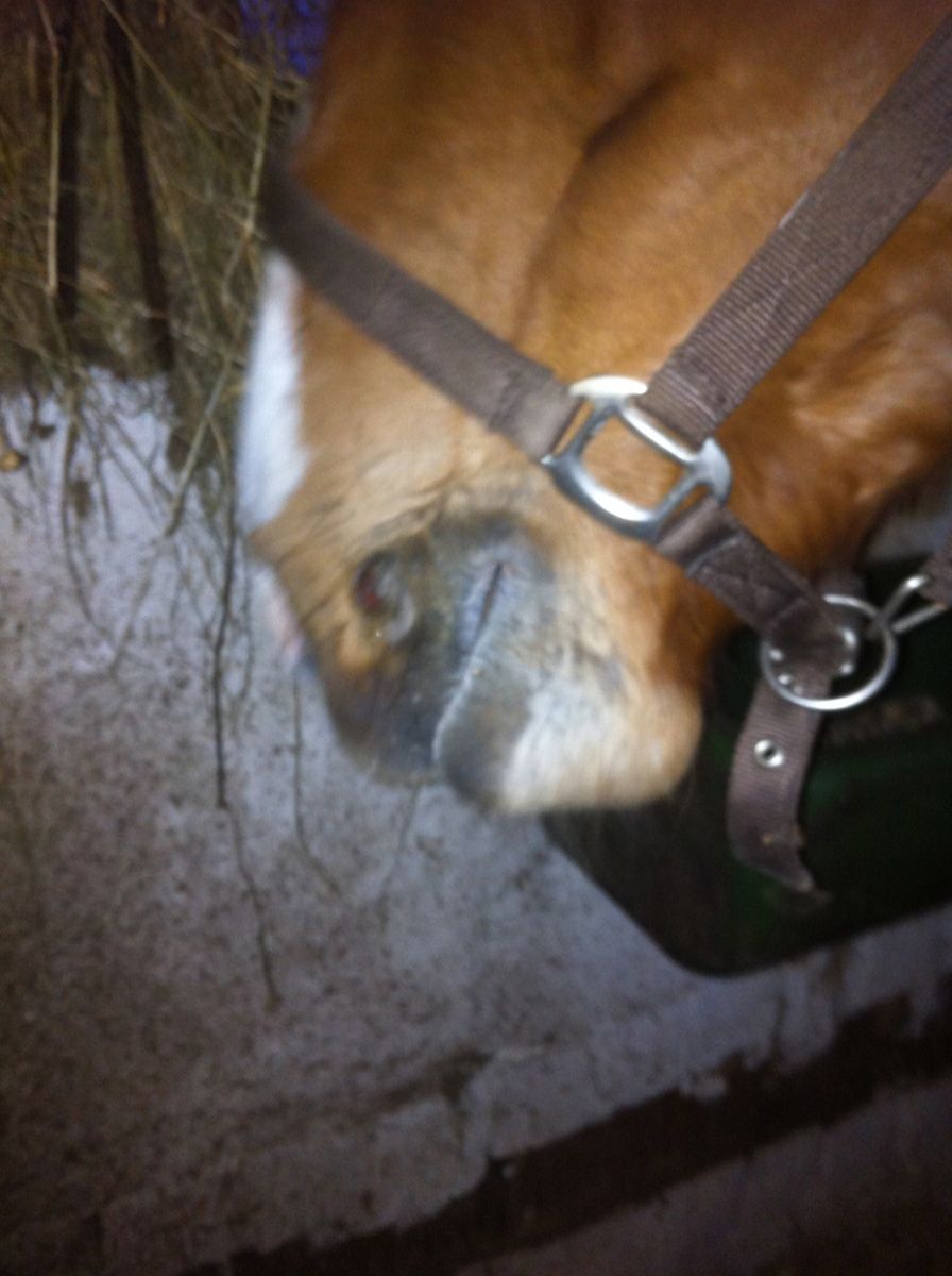 | Dire merci | euhmmmmmmmmm il dit quoi le nutritionniste équin ? MDR son "gnon" s'est ouvert, il a du se frotter, en dessous ça suinte un peu (j'ai pensé à un abcès ce matin) j'irai désinfecter après mais il faut que je change de mors pour virer la rondelle qui touche un peu. ca ressemble à ce qu'il avait au tout début où il était "frotté" par le licol qu'on lui laissait au pré (c'est une tapette mon jaune chochotte va ! ) sauf que c'est tout gonflé |