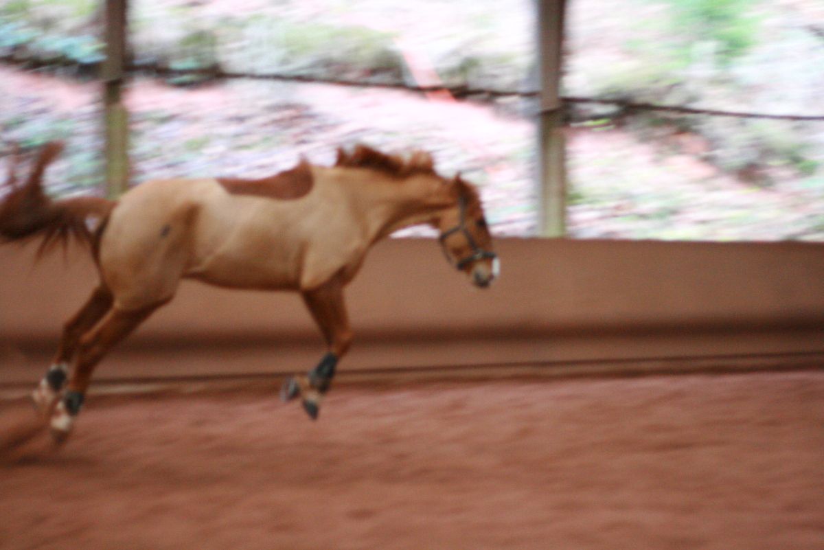 | Dire merci | en fait à 2 ca irai bien mieux, j'avais essayé à l'époque avec qqun, à 2 on pouvait lui faire faire des cercles et des diagonales, là, tout perdu. et oui EB comme il ne sort pas (trop plein d energie) c'est la galère. donc déjà, j'attend le paddock refait avec impatience (équivaut à un petit pré plus qu'à un réel paddock). et oui, la maison et ces histoires de notraires qui ne se règlent pas me gonflent, car moi, j'ai qu'une envie : lui offrir sa vie de cheval .... de cheval libre aussi !! |