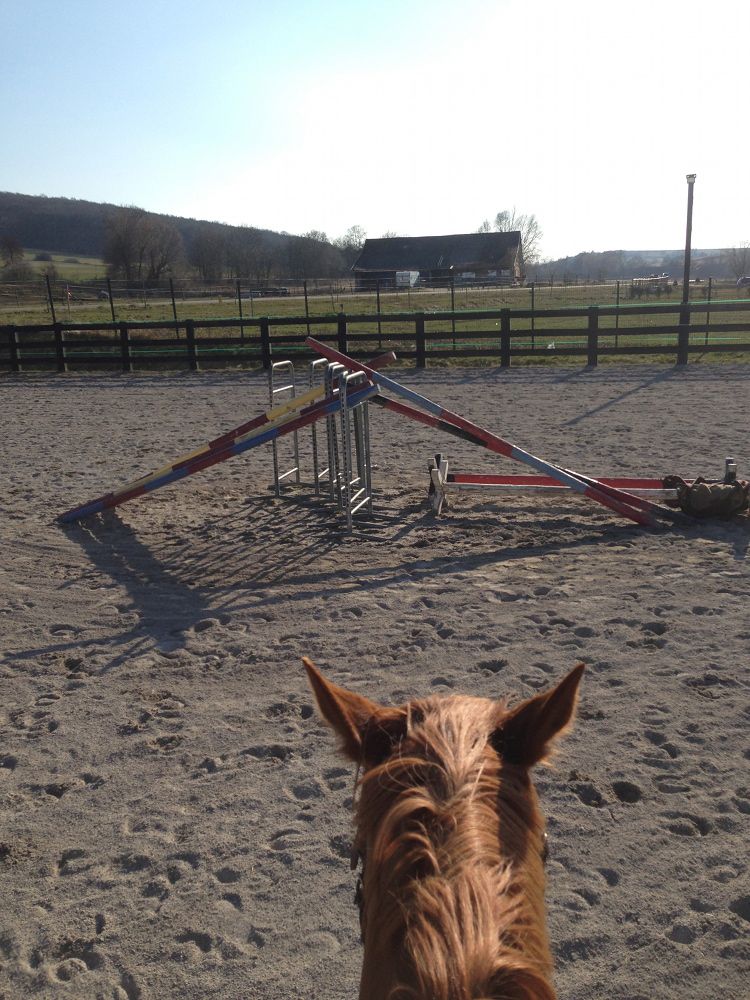 | Dire merci | Allez j'ai penser a toi, J'ai fait 2 seance de "travail" en extérieur avec Gabin, il me met un peu la race Hier = cuinage coup de dos en descente Aujourd'hui = montage a la tronche sur les débuts de séquence de galop rapide t'es pas la seul a avoir des pas concentré / pas sage dehors en ce moment ! Bon avec le boulot ça va redevenir opérationnel ! |