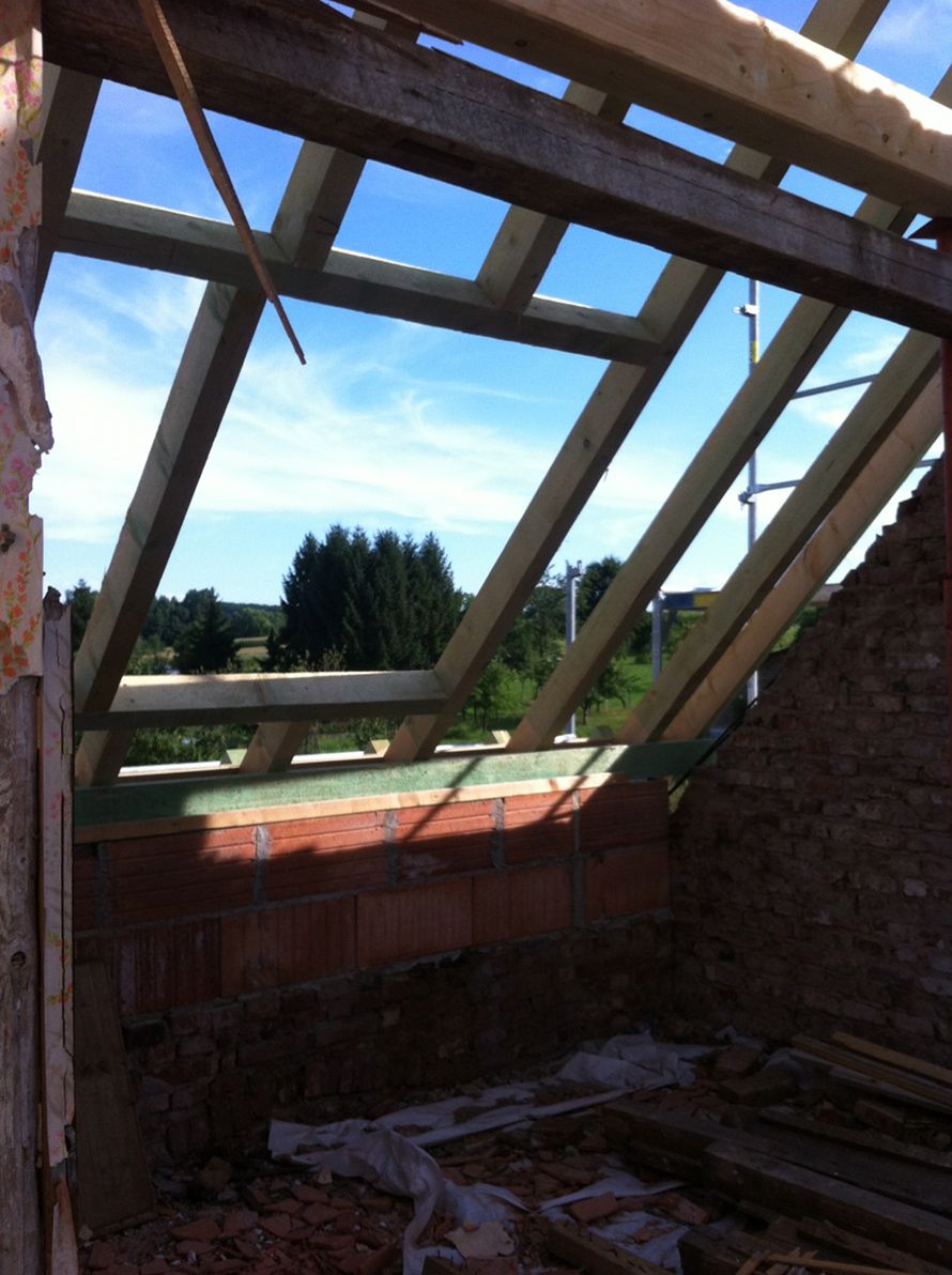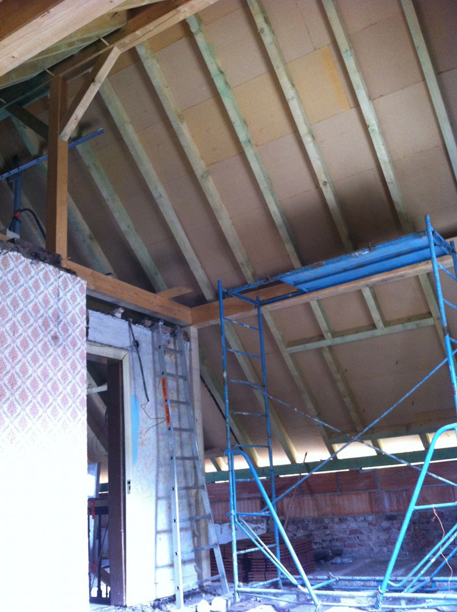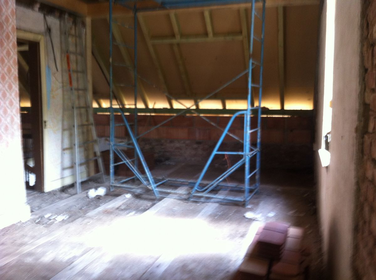 | Dire merci | pendant ... (travaux)![]() avec l'antenne qui à traversé le toit ... et est "tombée" dans la chambre ... ![]() arrachage de toit ! ![]() réhausse du mur de 2 briques et pose de la charpente ![]() [/url] isolation extérieure.... ![]() ![]() puis tout les murs de l'étage ont fini par sauter ... donc, vue dans la chambre de l'escalier .... avec le conduit de cheminée ... ![]() |