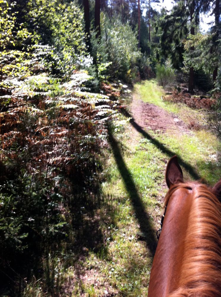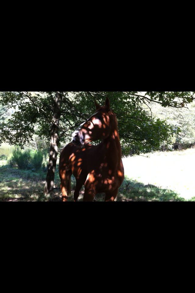 | Dire merci | Voilà, encore un bon jour. J'ai monté ce matin genre 20 min en carrière pour vérifier les acquis de transitions dans l'allure. C'est ok mais pas encore assez franc dans les allongements. Mes demandes ne sont pas assez franches aussi je pense. Avec ça cercles, diagonales pour travailler mon tracé et la aussi c'était pas mal. ![]() Du coup, satisfaite de cette détente, on est allé faire un tour avec un petit trotting sympa sans bagarre rênes détendues. Une descente longue mais pas très abrupte il a marche comme s'il allait faire un crottin, donc de sert du dos et ne se dégueule plus. ![]() Il a fait un Pile regardant a droite et j'ai vu un chevreuil ... L'ai laissé regarder en attendant que la bestiole parte et l'ai remis en route mais en faisant une Rene d'ouverture de l'autre coté qu'il s'occupe a autre chose et on est passé nickel ![]() |