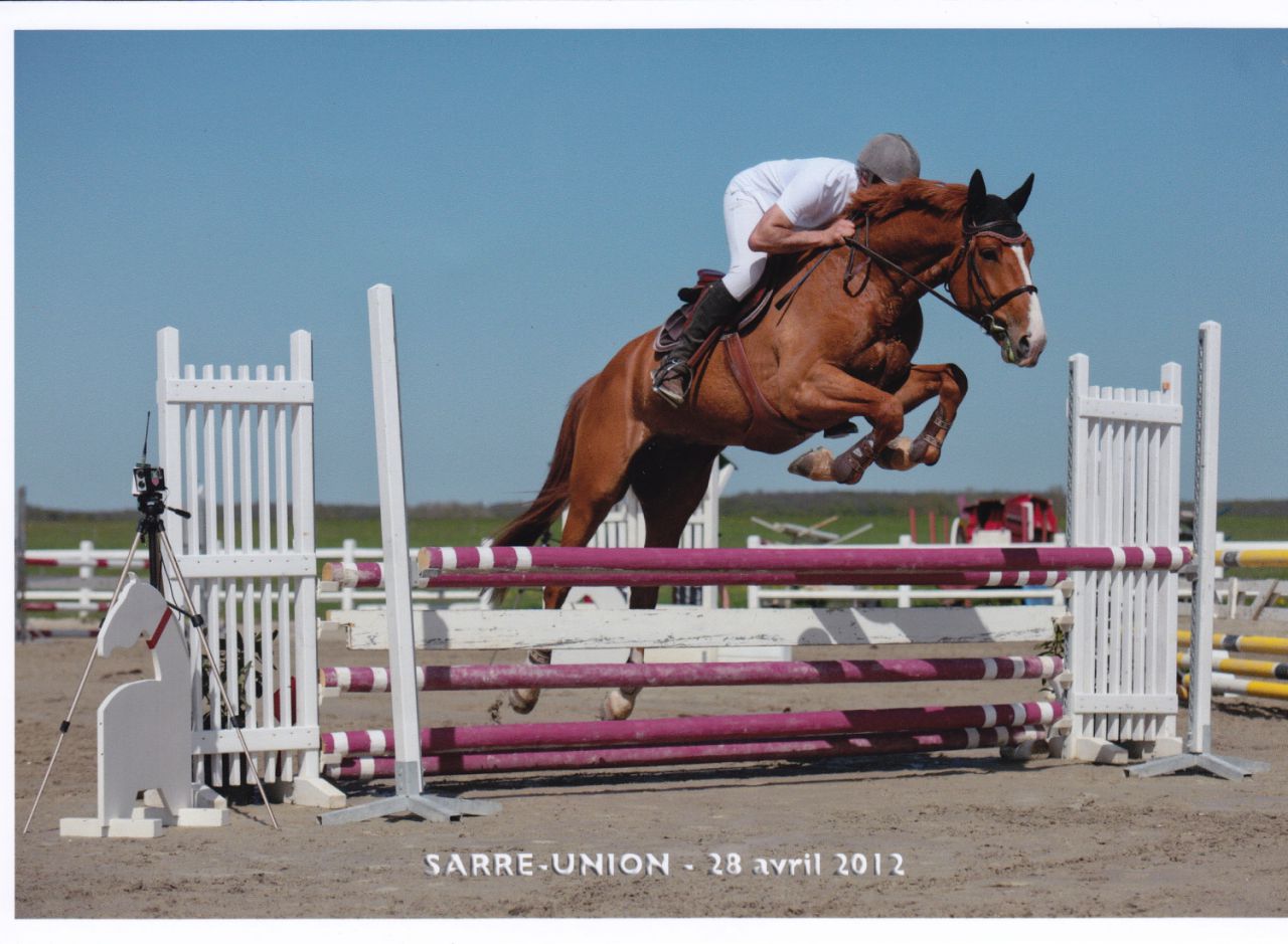 | Dire merci | ben évidemment, c'est la fin de mes vacances ! c'est MALIN ! j'ai de gros problème en ce moment de position (trop en avant, mon cheval plonge) DONC , bilan du concours : cheval super SAGE super mou aussi pas de galop, infâme .... Manu était fâché à mort il a dit "avant qu'il s'entaille 'l'antérieur cet hiver on avait le cul, là y'a plus rien, le dos ne transmet plus rien entre l'arrière et l'avant, ça va pas du coup, bon, ben voilà quoi .... sinon il se promène sur les parcours comme un vieux, ne regarde RIEN. (tant mieux au moins ça) il se pose pas de question, même au ralenti, au moins il saute. une copine a filmé le tour (faudra attendre pour l'avoir la vidéo c'est pas gagné) les filles m'ont donc prise une photo obstacle ,°1 (c'est bas ! lol) : ![]() |