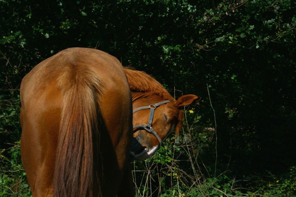 mais surtout.... je m'excite toujours à lui remettre ses crins du bon côté avec ma cravache, la petite touffe qui déborde à gauche.... ça va pas du tout !