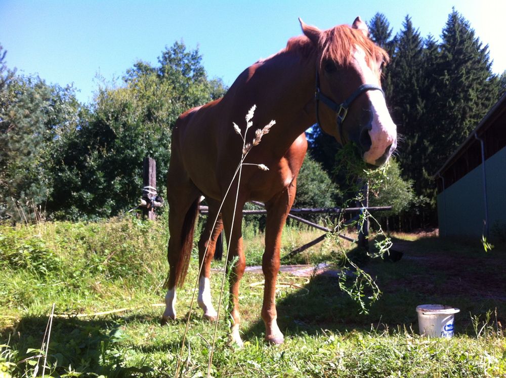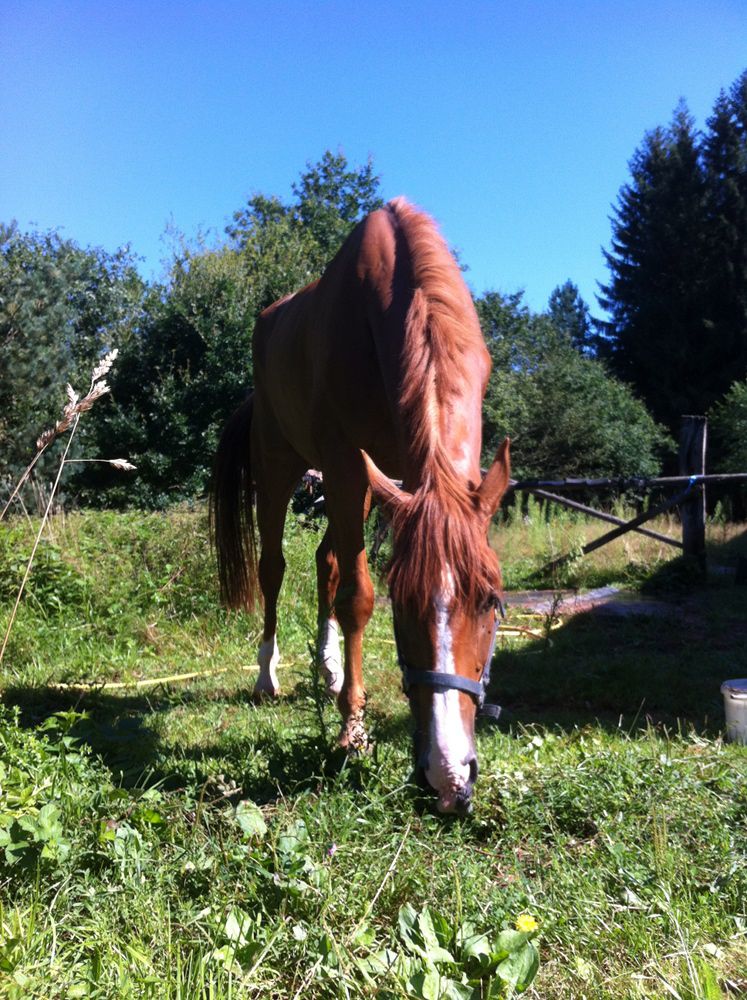 | Dire merci | Alors j'ai lancé la chasse aux carottes ... J'ai balancé des petits bouts de carottes partout et le voilà marchant gaiement faire sa descente d'encolure dans le mouvement .... En voilà une idée qu'elle est bonne ! Déjà top le bon oeil ! |