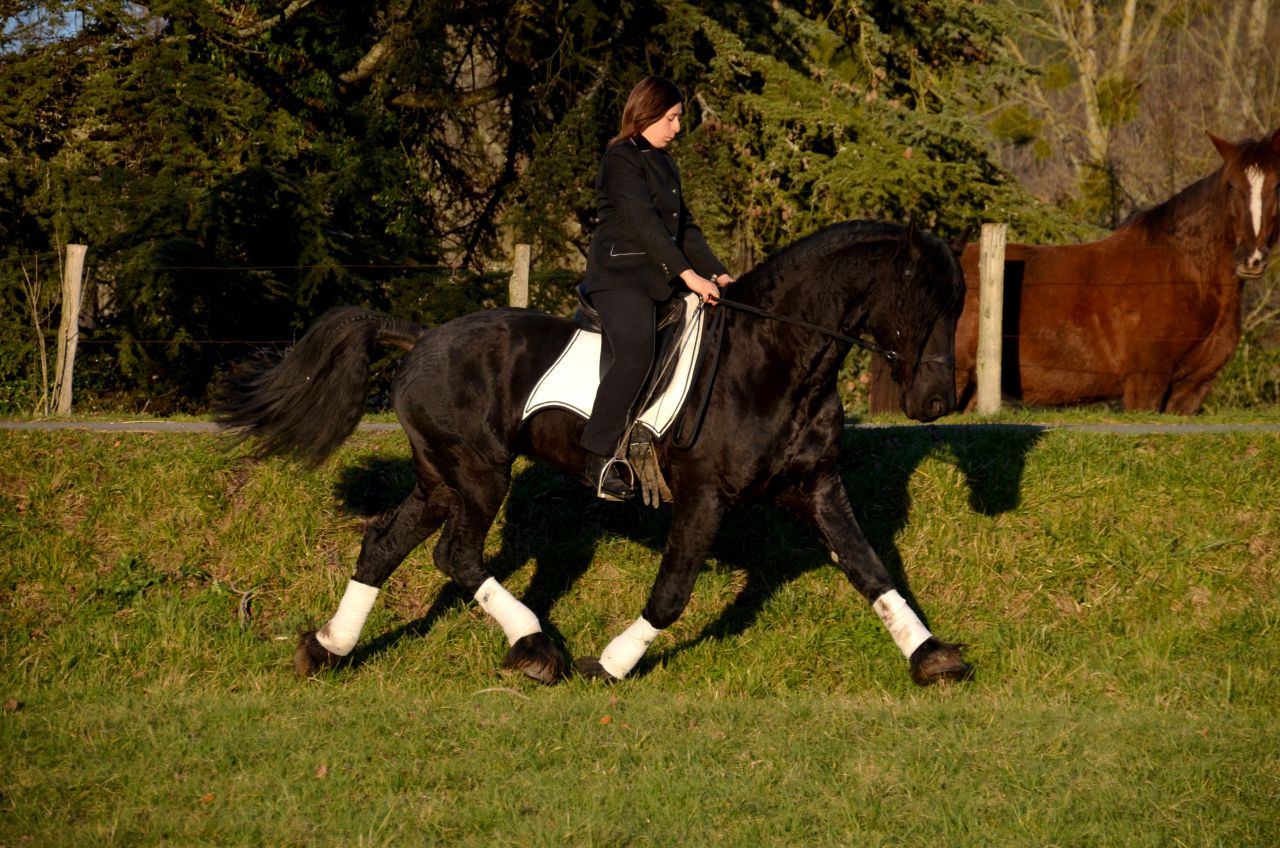 | Dire merci | Merci bcp ! Il y a du boulot encore il s'économise le Tattoo (surtout sur cette séance là, il faisait chaud il n'avait pas trop trop envie) ce n'est pas si simple pour faire du "dressage" mais j'ai la chance qu'il comprenne très très vite Chapaval oui oui il y a du rebond et pour l'assiette beh j'ai du boulot pour le suivre, je n'y arrive pas encore bien ! on va dire c'est en "progret" Il fait 1,70m.Idole merci quand même ! avant ça ne fonctionnait pas, maintenant ça fonctionne |