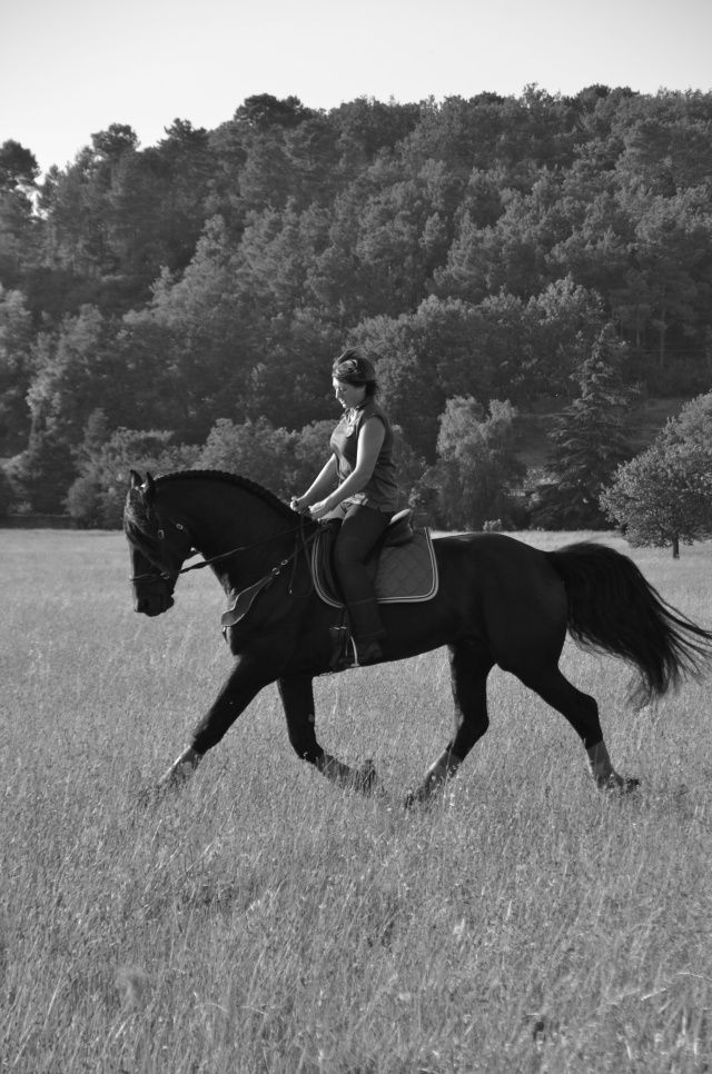 | Dire merci | Je viens de faire tout le post, et...WOAW ! Je suis scotchée, c'est magnifique une telle relation La demi trait est splendide ! Et ton frison, hé bien au départ je ne suis pas fan, mais là, quel modèle, quelle prestance ! Bravo |