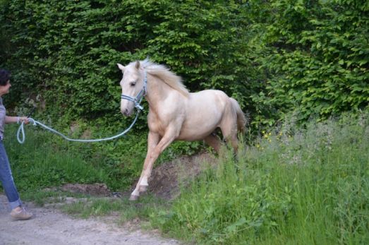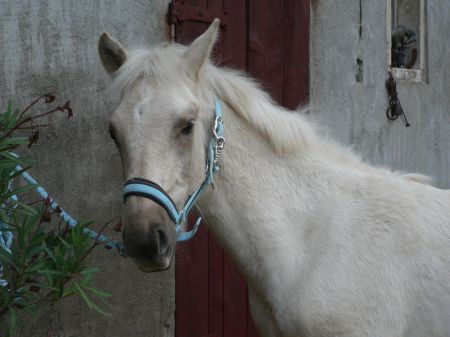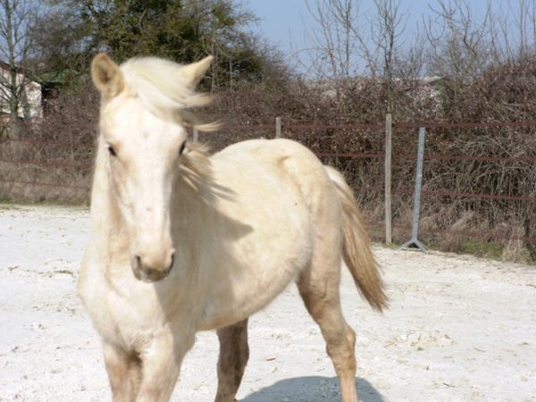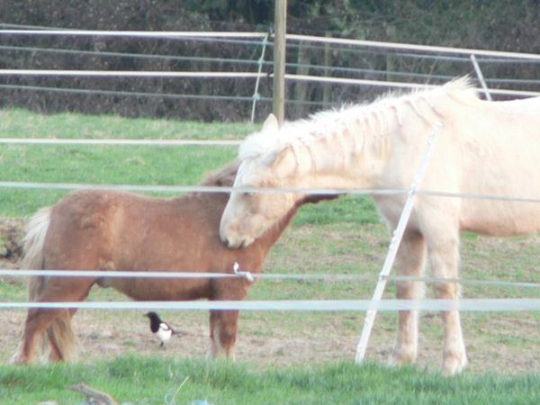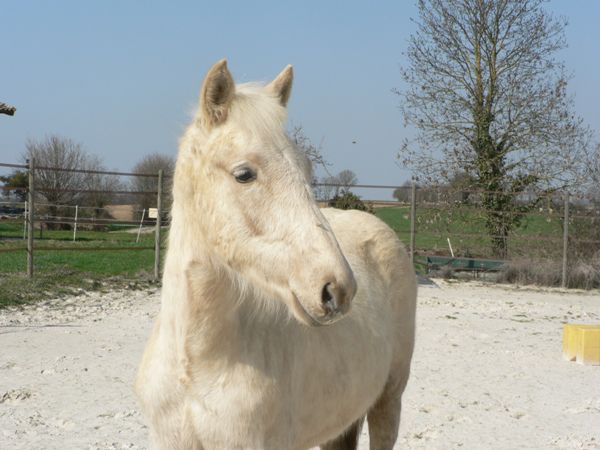 | Dire merci | Quelques news de poulinou en ce début de printemps! Ptit poulain va bientôt avoir 1 an et grandi bien: toisé 1 m37. On continue les ballades au pas et au trot en main, un pur régal, quelques appréhensions en chemin: baches énormes dans les champs sous le vent, petites caresses et ça repart! on a repris le travail en main: arrêt, slalom, reculé... ok mais ces derniers temps il boude la bâche, il met plus de temps à passer dessus car avec le vent elle bouge un peu! Sinon j'ai de la chance mon ptit poulain aime bien me suivre donc le travail en liberté se passe bien!! Bref que du bonheur! ![]() Allez place aux photos! |