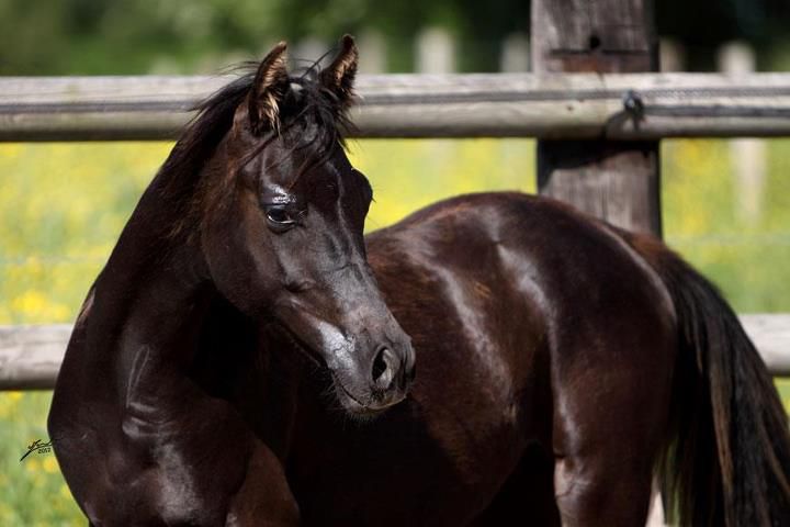 | Dire merci | Je vous présente BAHIR, un superbe poulain arabe noir né à Sinoan Arabians cette année.![]() C'est un petit fils de Ruminaja Fayez: ![]() |