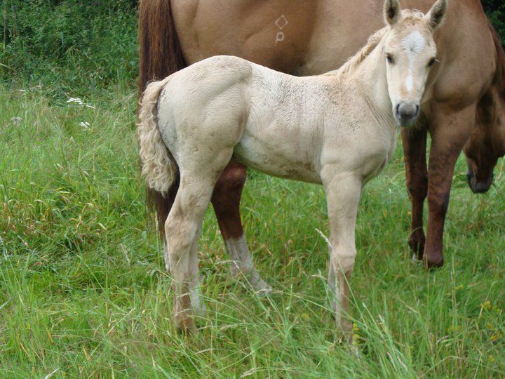 | Dire merci | Chouette travail avec ta puce! Elle se déplace bien la miss! Alors le papa de la nièce à Tiz (donc son 1/2 frère): Little Boy Of Golden: ![]() La maman, une QH red dun: ![]() Et le bébé :![]() ![]() |