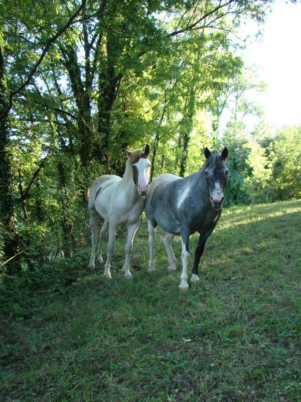 | Dire merci | Je vais également vous présenter les 9 chevaux qui partagent leur quotidien. Sonny, entier paint de 6ans, c'est le chéri de Quenya ![]() Tina, jument de 5ans croisée arabe, et son fils Texas (fils de Sonny) ![]() Cowboy, entier paint x argentin de 2ans, et Dakota 20ans ![]() Anka, pouliche paint x appaloosa d'1an et demi ![]() Coquine, ponette shetland, pleine pour 2012 ![]() Et il me manque des photos de Angelova, jument PS de 6ans sauvée de la boucherie cet été et Coquin, le shetland qui partage le box avec Quenya et Denver |
