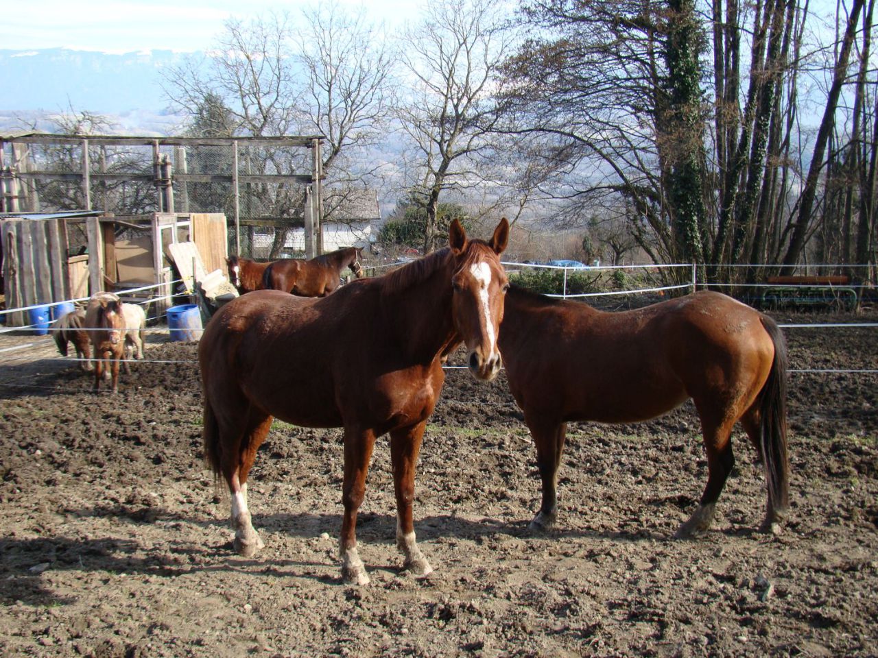 | Dire merci | Pas de photos, mais des nouvelles! J'ai visité hier la future pension de Denver! Il déménage soit le 1er avril soit le 1er mai, suivant quand la place se libère! C'est vraiment le top du top!! Une petite écurie avec une dizaine de propriétaire. Bâtiment flambant neuf construit l'automne dernier, avec des grands boxes lumineux et nickel (j'avais presque l'impression qu'il n'y avait jamais eu de chevaux dedans tellement c'est propre!), carrière 20x40, marcheur couvert, paddocks individuels avec clotures parfaites (ou possibilité de mettre les chevaux par 2 si on demande), prés, alimentation top qualité, abreuvoirs chauffants et le gérant est maréchal Enfin le top quoi!!!! Je suis trop contente! Je vais pouvoir commencer à bosser mon gros dino!! |
