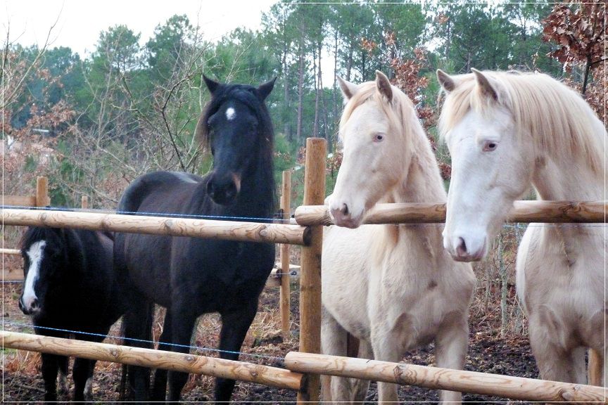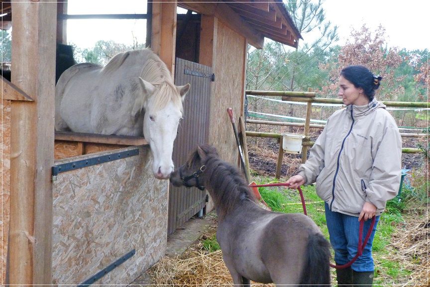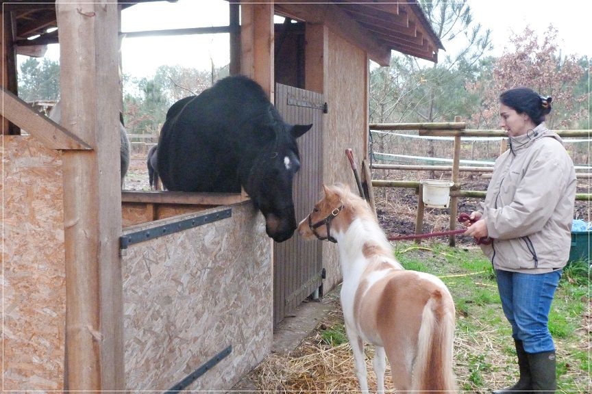 | Dire merci | Et oui, pas de nouvelles depuis un moment, mais c'est parce qu'il s'en passe des choses ici ![]() Déjà, j'ai posé ma démission de mon travail, je ne vais plus m'occuper que de l'élevage et des chambres d'hôtes. Ensuite, les enfants de la chambre d'hôte souhaitant tout le temps rentrer dans les parcs à chevaux, j'ai préféré leur prendre des chevaux à leur taille pour papouillages intensifs et nous avons rencontré deux petites bouilles à bisous, j'ai nommé: Kasper et Klarjie! Les voici, à la descente du van ce matin: Elles sont tondues, transies de froid, on a vite fait quelques photos pour les mettre à l'abri avec une couverture dans le box de poulinage, en attendant que leur poil repousse. Kasper: ![]() ![]() Klarjie: ![]() ![]() Alors vous allez me dire, oui, c'est vrai, je n'aime pas les robes pie, mais j'ai choisi avant tout une jolie morphologie et un caractère, je les voulais faciles, calines et proches de l'homme, ce sont donc elles qui ont remporté la palme de la gentillesse. La véto les a vues ce matin, elles sont parfaites, pas de défaut d'aplomb ni de machoire (ce qui arrive chez les minis) et ce sont des machines à calins Conclusion, la robe, on s'en fout, alors bienvenue à ces deux petites perles ![]() |