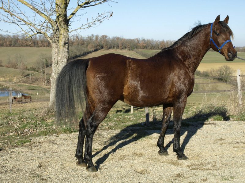 | Dire merci | moi pas encore sur à 100% WS Sabrina alias Sépia ponette plein papiers hackney de 1m28. Bai brun. Aura 6 ans, ce sera son 2eme poulain, va faire le cycle classique jeune chevaux 6 ans en endurance sur 20 et 40km au moins et peut etre un dressage et des cso si jument prete et concours pas trop loin. Bon aplombs, bonne ligne de dos, epaules fortes, modèle sport, allures amples. Cardiaque au repos 36 avant le débourrage. Défaut, dos un peu long.Tendance à avoir des réactions un peu explosives, allures parfois trop relevées surtout avec le stress. Produit grand, bonne mère. ![]() sera saillie par Oursene étalon arabe labellisé **** en endurance. 1m55. Bai brun. Qualifié sur CEI* en endurance. A produit de nombreux produits sortant en internationaux endurance dont le plus célébre Kergof. Certains de ses produits sortent aussi en amateur en cso. Etalon bien dans sa tete modèle sport mais modèle résistant. Bon aplombs et bonne ligne du dessus. Allures souples, basses et amples. Produit des poulains calmes qui gardent leur énergie. Cardiaque au repos bas et très bonne récup (36 après des courses de 40km). ![]() ![]() ![]() |