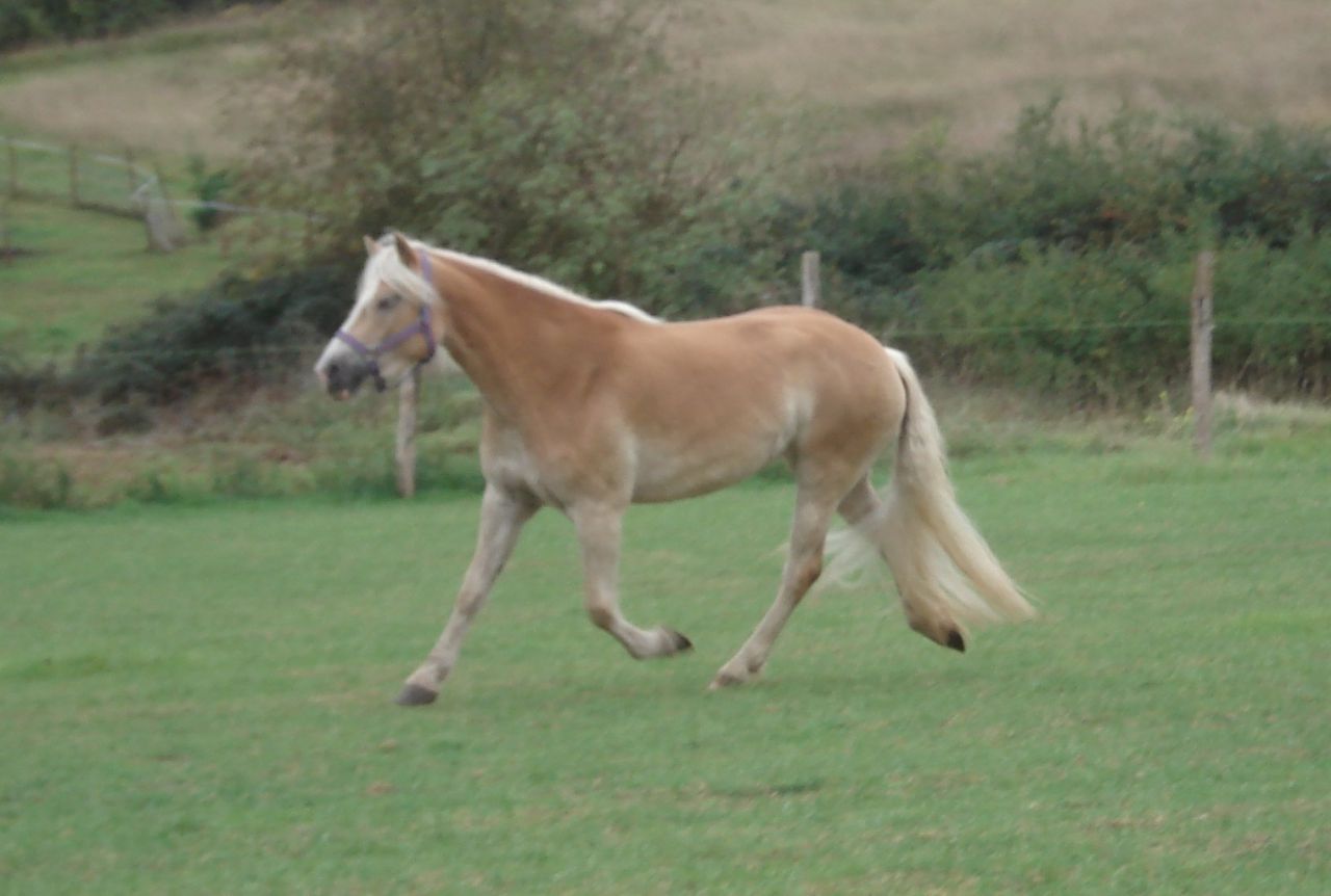 | Dire merci | Sinon chez nous sur les 3 poulinières, probablement qu'une seule de mise à la saillie. Argunta a besoin d'une année de repos, voir d'être arrêtée. Je précise qu'elle n'est pas à la lettre car importée d'Autriche, elle a 18 ans. Sklérijen vient de se blesser gravement, déchirure musculaire profonde du plexus brachial, probable élongation des ligaments et contracture musculaire du triceps du plexus brachial... La miss est gestante alors après tout ça je crois qu'elle aura mérité une année de repos. Reste Siobane, qui elle est en pleine forme et sera donc mise à la saillie! Donc SIOBANE DE L'AURORE par Liz Newlook et Shania Van Het Bakkershof, jument Haflinger PP, ![]() ![]() Ira à la saillie avec , SPERED AR STIVELL, notre étalon Haflinger PP agréé, par Andiamo II et Hanter Noz Erika, ![]() ![]() |