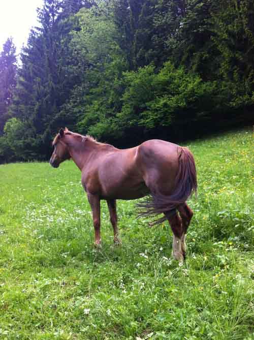 | Dire merci | Désolée pour toi hope ... Ici on va bientôt passer le mois de gestation, plus que 10, trop cool pff c'est décidément trop long la gestation d'une jument ...A la fin du mois on la ramène à l'écho de controle des 40j, histoire de voir si poulichou s'est accroché ... en tous cas là elle a bien son caractère de jument pleine de m*rde, elle se prend pour un étalon ... Et vas y que je sniffe les crottins et te fait 10min de flehmen, que je sniffe poulichette et hongre, ronfle des naseaux, couine et balance l'antérieur ... Pareil qu'il y a 2 ans sacrée Mira ... |