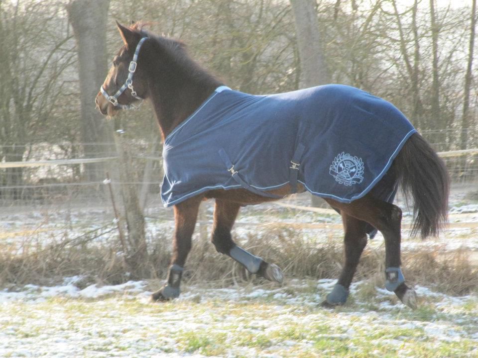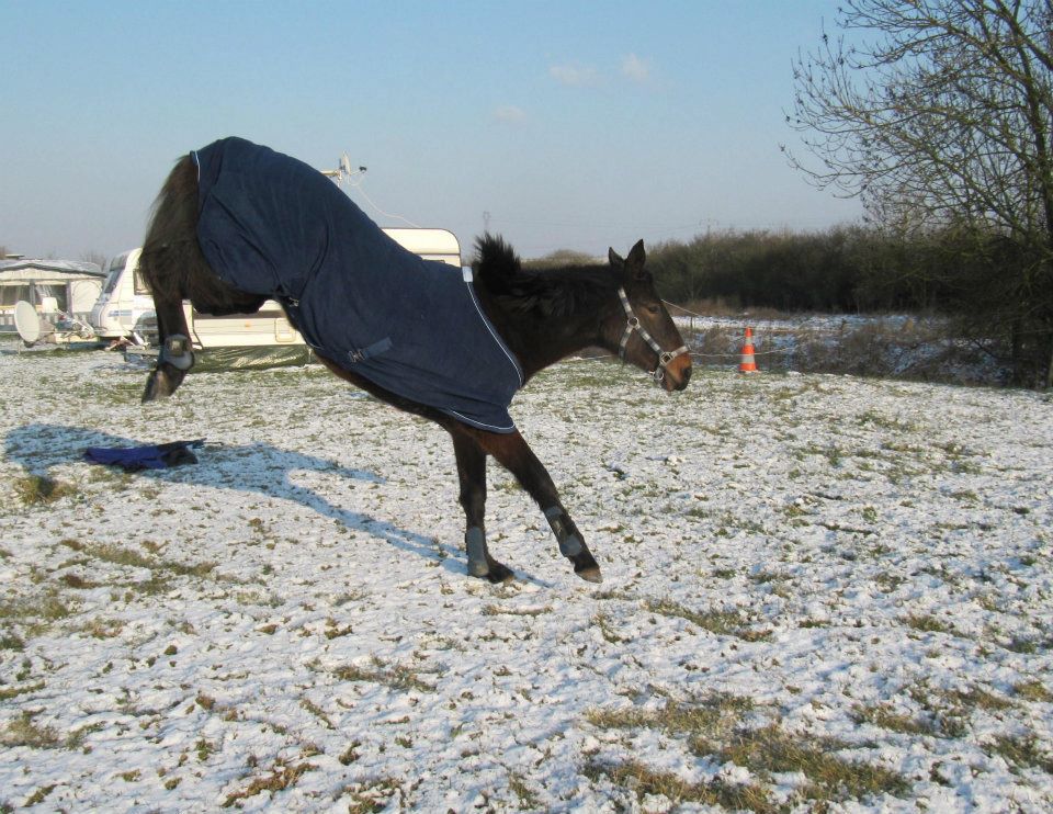 Effectivement c'est une chemise polaire qu'elle a sur le dos Arkane! Parce qu'avec -10° dehors, alors qu'elle perd son poil d'hivers (a cause des temps trop doux qu'il y a eu) et que l'intérieur de l'écurie est bien chaude.. Je préferais lui mettre une petite couche!