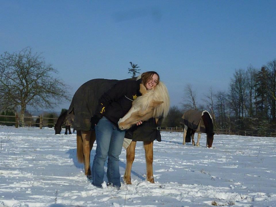 Quand au boulot et bien le pas le trot et l'arret sur ordre vocal et/ou de positionnement son acquis bien acquis et définitivement acquis ! Le passage de "portes" très etroites est acquis aussi, de même que la desensibilisation à la chanvrière qui claque dans l'air a coté d'elle ou qui se frotte partout sur elle. Hormis ces petites séances de travail de temps en temps c'est ballade ballade ballade! Aujourd'hui 45minutes, hier pareil, dimanche dernier 2h! Malgré le froid ces moments avec elle sont un régal