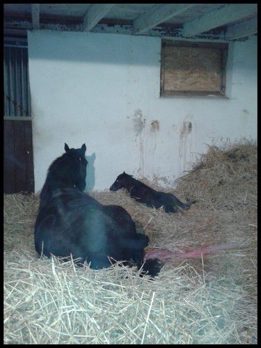 | Dire merci | en tous cas debout à 4h30 pour ensuite enchainer au boulot, pfff ça crève .... mais quel plaisir de voir une naissance !! Mais ce n'est pas fini, la deuxième poulinière est a terme depuis samedi, donc bin on continu de veiller quoi |