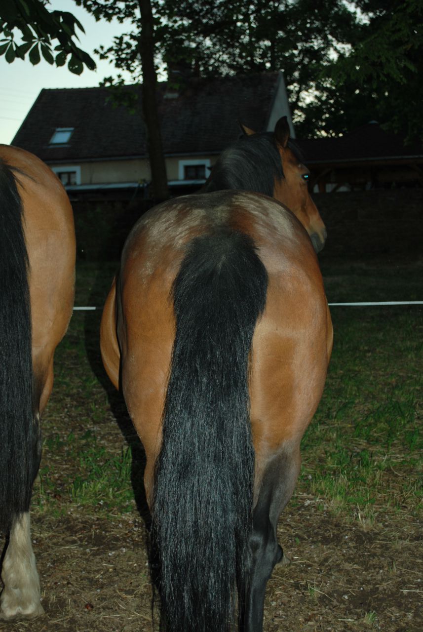 | Dire merci | Bonjour tout le monde, Alors tout d'abord félicitation à toutes les mamans, j'ai lu les 103 pages précédentes (en deux jours...c'est très long) et j'ai vu toutes les photos des futures mamans et des petits poulains nés jusqu'ici (tous plus beaux les uns que les autre )Pour ma part, j'attends également un heureux évènement. En effet ma jument est pleine de 340 jours, et elle cire depuis 2 semaines. Et comme elle est primipare, cela fait donc 2 semaines que nous sommes en panique (sa maman avait pouliné le lendemain des premières gouttes de cire, et sa grand mère pareil, preuve que toutes les juments son différentes!). Nous prenons la temperature, et madame nous fait des petites hausses jusqu'à 38,4°C, puis le lendemain une chute à 37,1°C, puis elle retourne à sa moyenne... De quoi désespérer. En même temps, ce n'est pas alarmant non plus, mais la fatigue et le stress s'accumule. La voilà en photo, elle n'est pas énorme, et en plus elle a du gras (sur le fesses en particulier) mais c'est son premier poulain. ![]() ![]() ![]() |