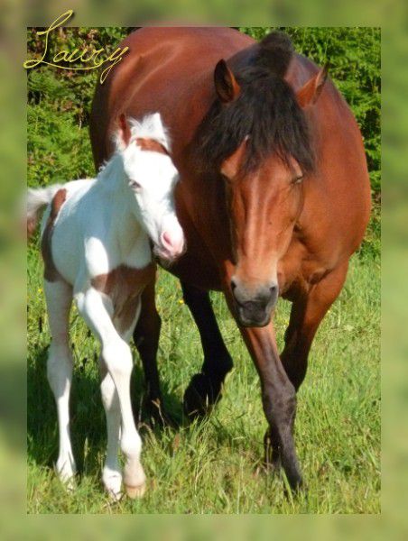 | Dire merci | On est un poulain courageux mais pas téméraire, faut pas déconner quand même, on reste au près de maman ! Je la trouve absolument magnifique Opale ... Pas du tout à l'affut la mère ! Et une dernière ![]() Voilaaaaaa ![]() Je souhaite bon courage à toutes celles qui attendent encore, ça vaut vraiment VRAIMENT la peine d'être patiente L'émotion que j'ai ressenti quand je l'ai vu hier matin pour la première fois, c'est même pas descriptible alors soyez patientes les filles ça viendra |