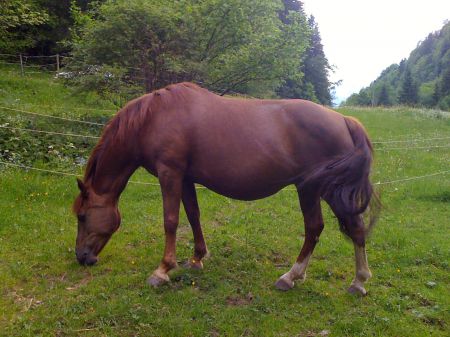 | Dire merci | Magnifiques les photos!!!! Avec la jolie herbe en plus c est trop beau!!!! Moi j'aurais pas d herbe.... Et Opale est vraiment magnifique!!!!! Et a l'air d'être une maman géniale!!!! Cette nuit vulve détendue mamelles bien grosses (enfin surtout les mamelons ) mais elle est ultra calme et bouffe bouffe bouffe... le matin elle tape à la porte de son boxe pour que je la resorte.... On est a 350 jours... j'arrive plus à y croire... je sais que ca vaut la peine mais j'arrive pas à me dire qu'un jour je vais enfin pouvoir dire "ca y est il est la "... |