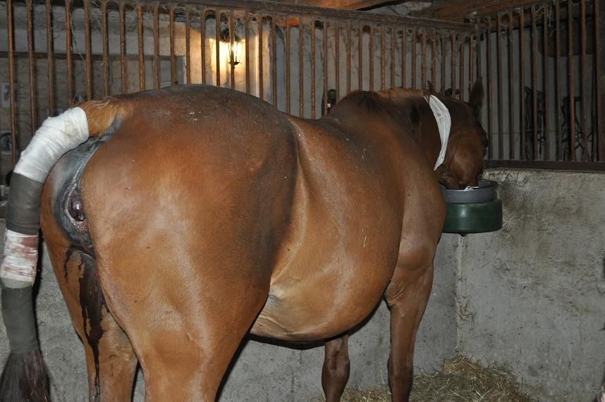 | Dire merci | je suis pas choquée par la photo mais je n'arrive pas à me rendre compte c'est tout le coté de la vulve qui a été arraché? le poulain a l'air grand et déjà bien rempli c'est pas une crevette |