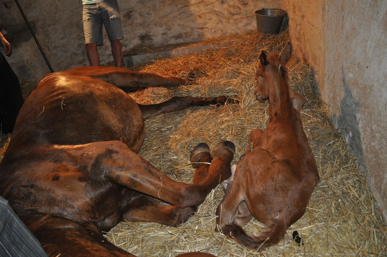 c'est terrible moi je n'étais pas la mais quand mon ami m'a appelé a 5 hr au boulot la première chose que j'ai demandé c'est comment va ma jument (ben oui 5hr du mat était forcément synonyme de mauvaise nouvelle) pour moi aussi c'était le plus important, sauver ma jument avant toute chose, pas sure qu'elle puisse elle aussi re-pouliner c'est l'écho du mois prochain qui va me le dire