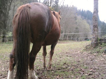 | Dire merci | Tu laisses sa couverture pendre comme ca ? La dernière fois que je l'ai fais la ponette a eu peur et ma jument est partie au galop, il pleuvait très fort la couverture est tombé dans la boue bref le drame |