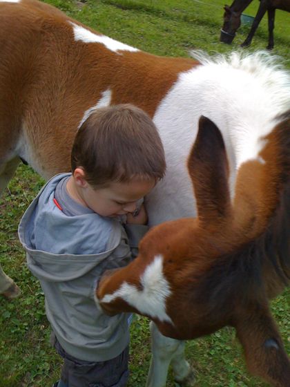 | Dire merci | oui il a un petit air de comtois comme ca le petit Boycott ! tre bonne nouvelle pour moi ! bebe bagy et moman pampa retourne en paddock demain !!!!!!! Mais le veto ne veux pas qu'elle soit en contact avec d'autres chevaux avant ses 4 mois car defenses immunitaires trop faibles a cause d'un trop peu de colostrum a la naissance ![]() |